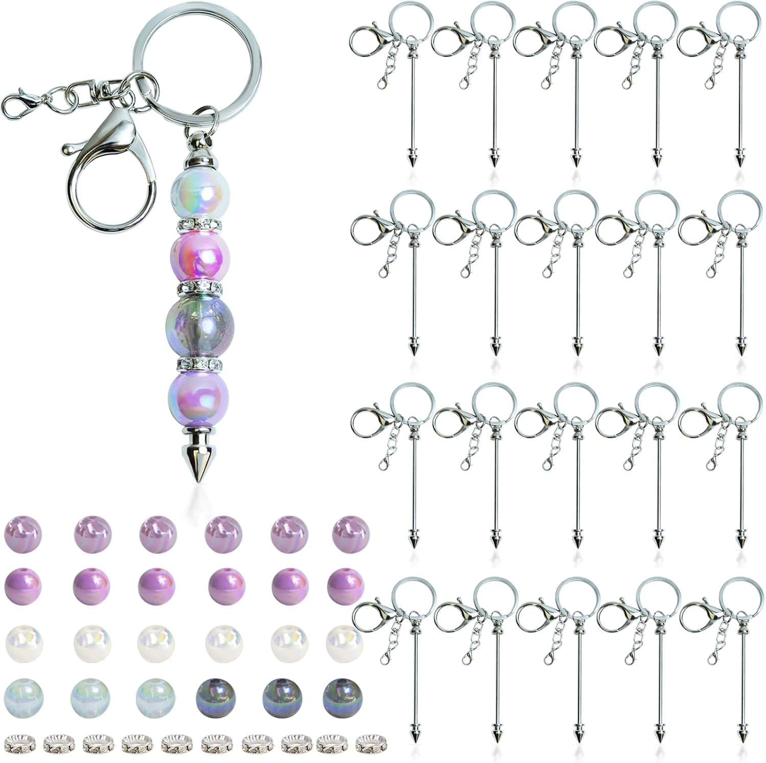 LEIOSAGN 54個シルバービーズ可能キーチェーンキット DY0763