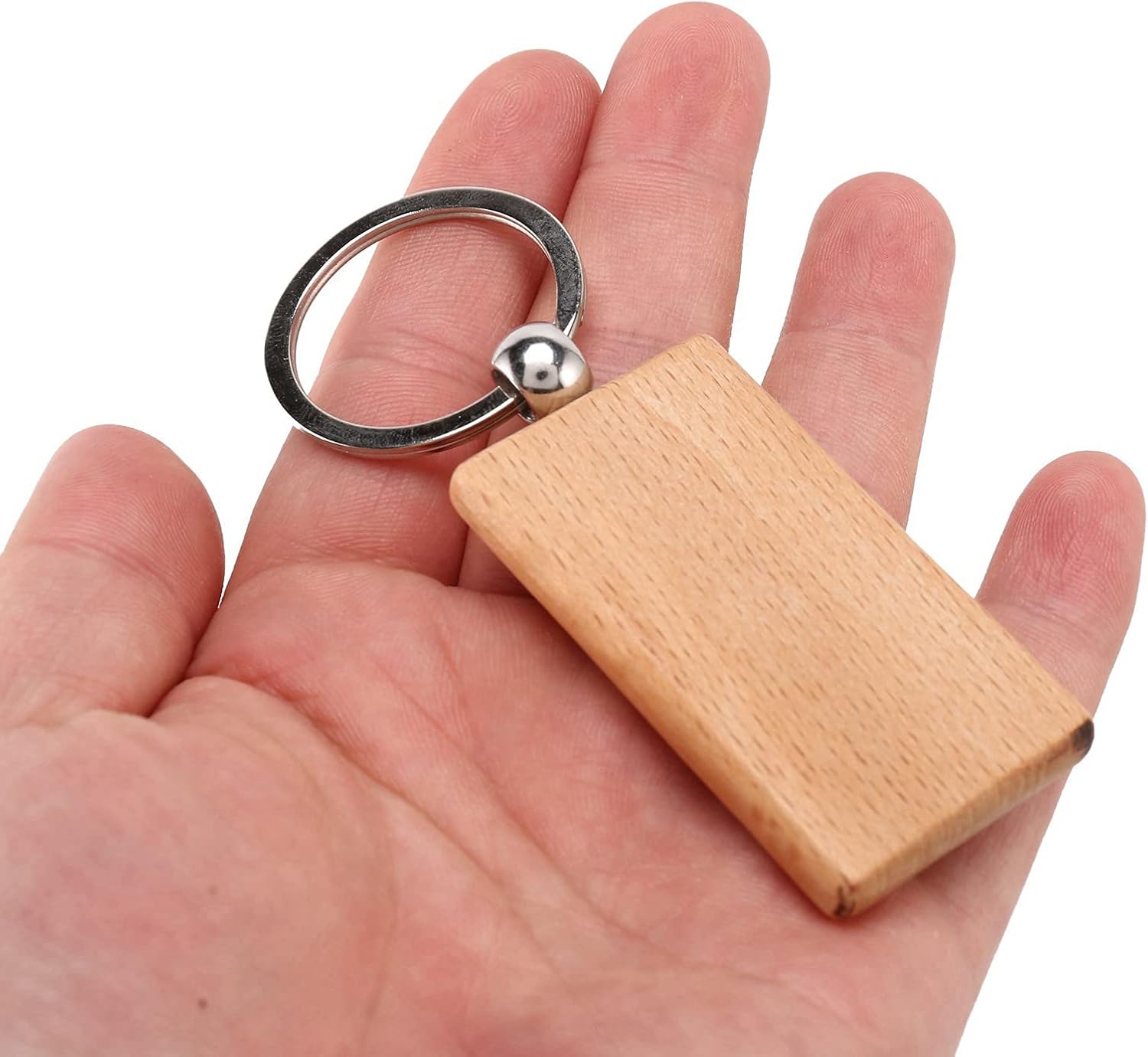 Huhebne 200個、空ホワイトの木製キーホルダー DY0025