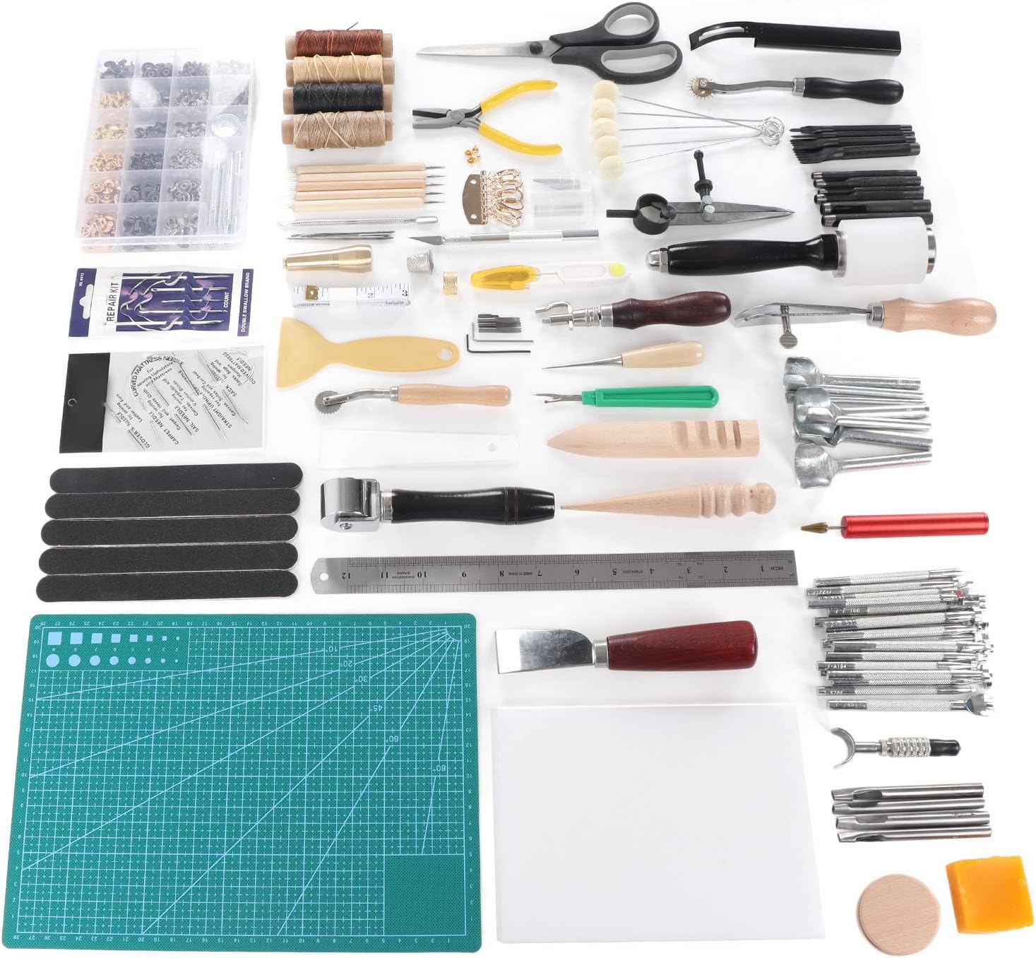 全な革加工ツールキット、ステンレス鋼と木材の修理セット DY0429