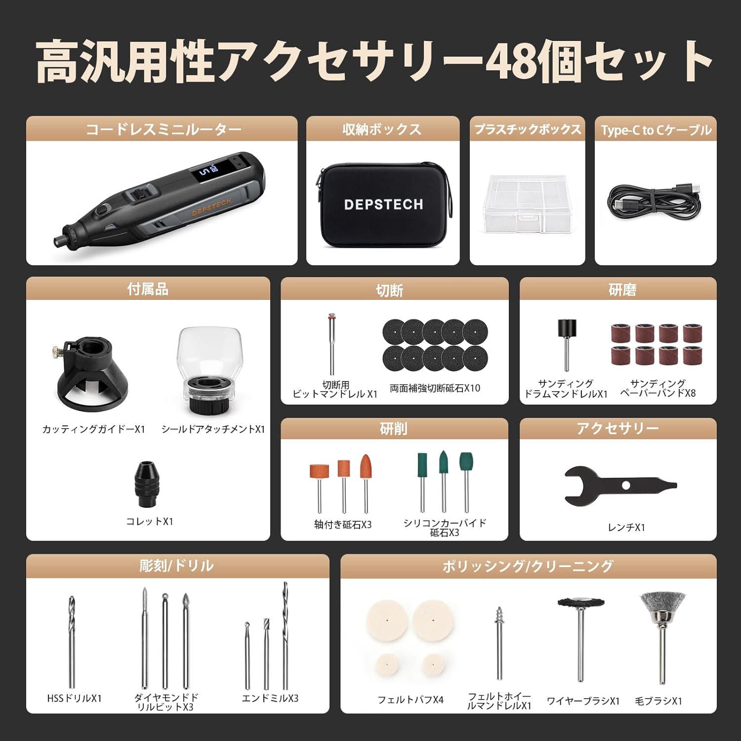 ミニルーター DEPSTECH 12Vリューター 35000RPM高速回転 DY0182