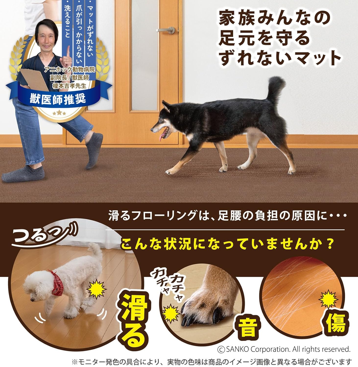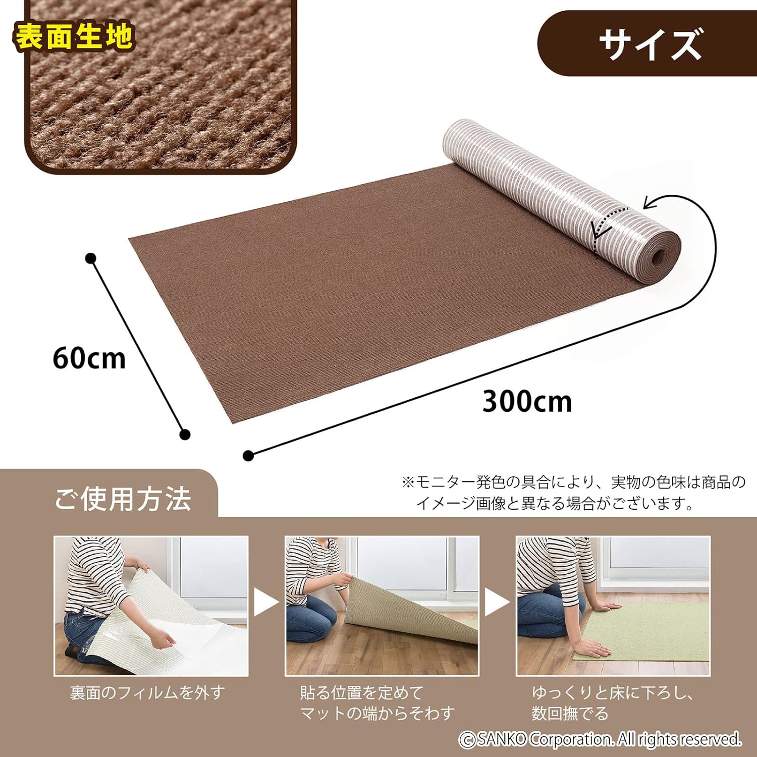 カーペット はっ水 消臭 日本製 おくだけ吸着 ロングマット 60×300cm ブラウン KH-69