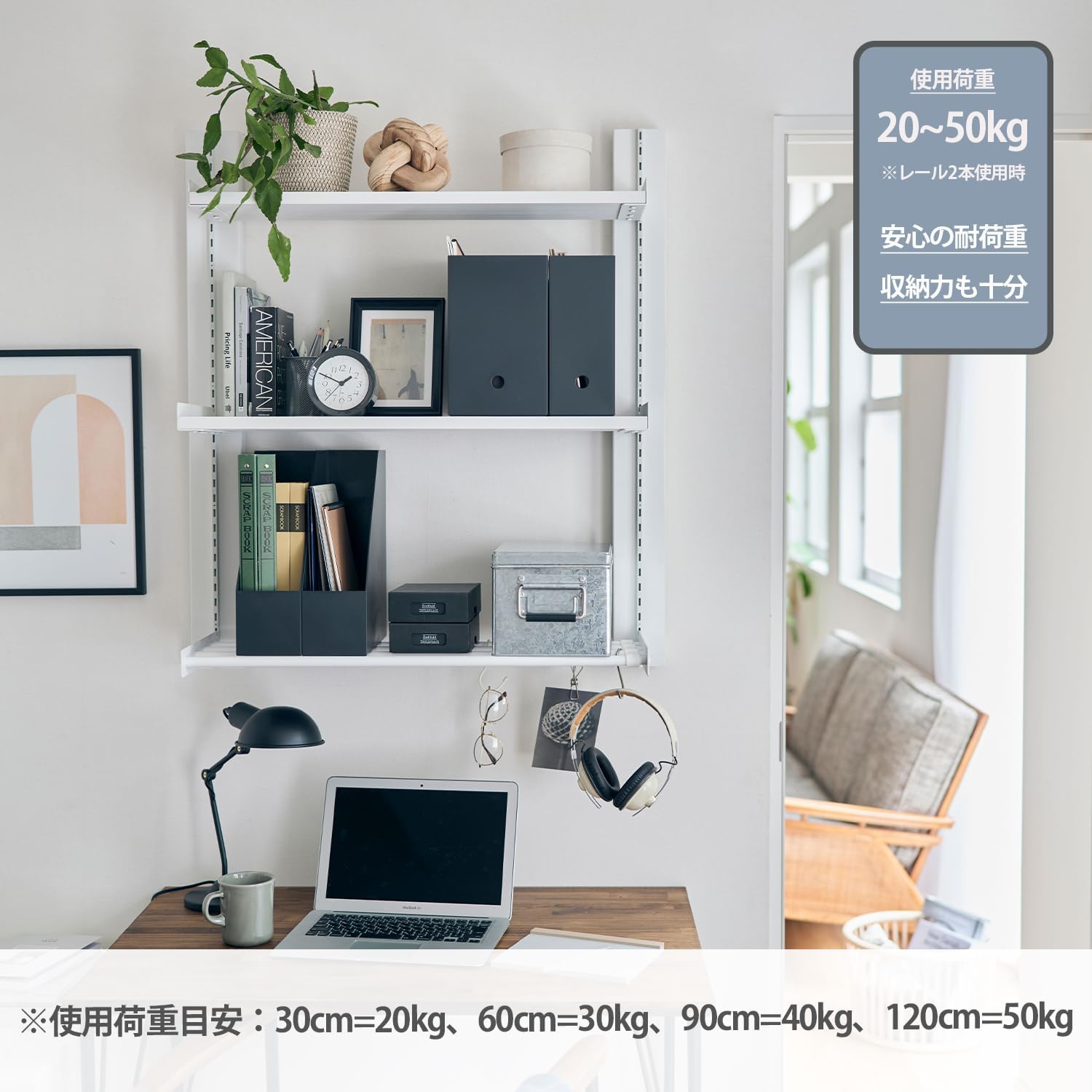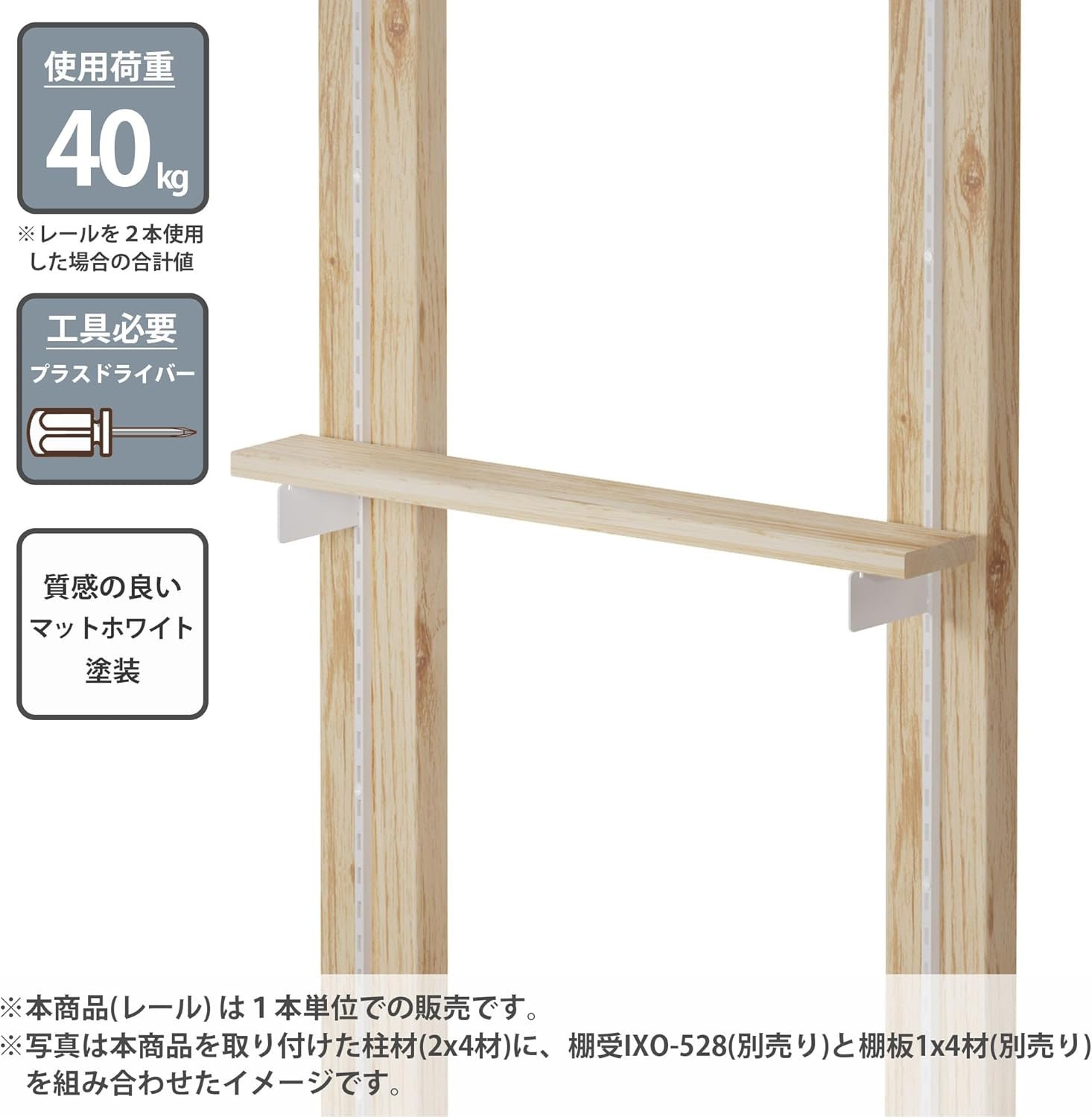 棚柱 シェルフレール アイアン 長さ90cm マットホワイト IXO-526