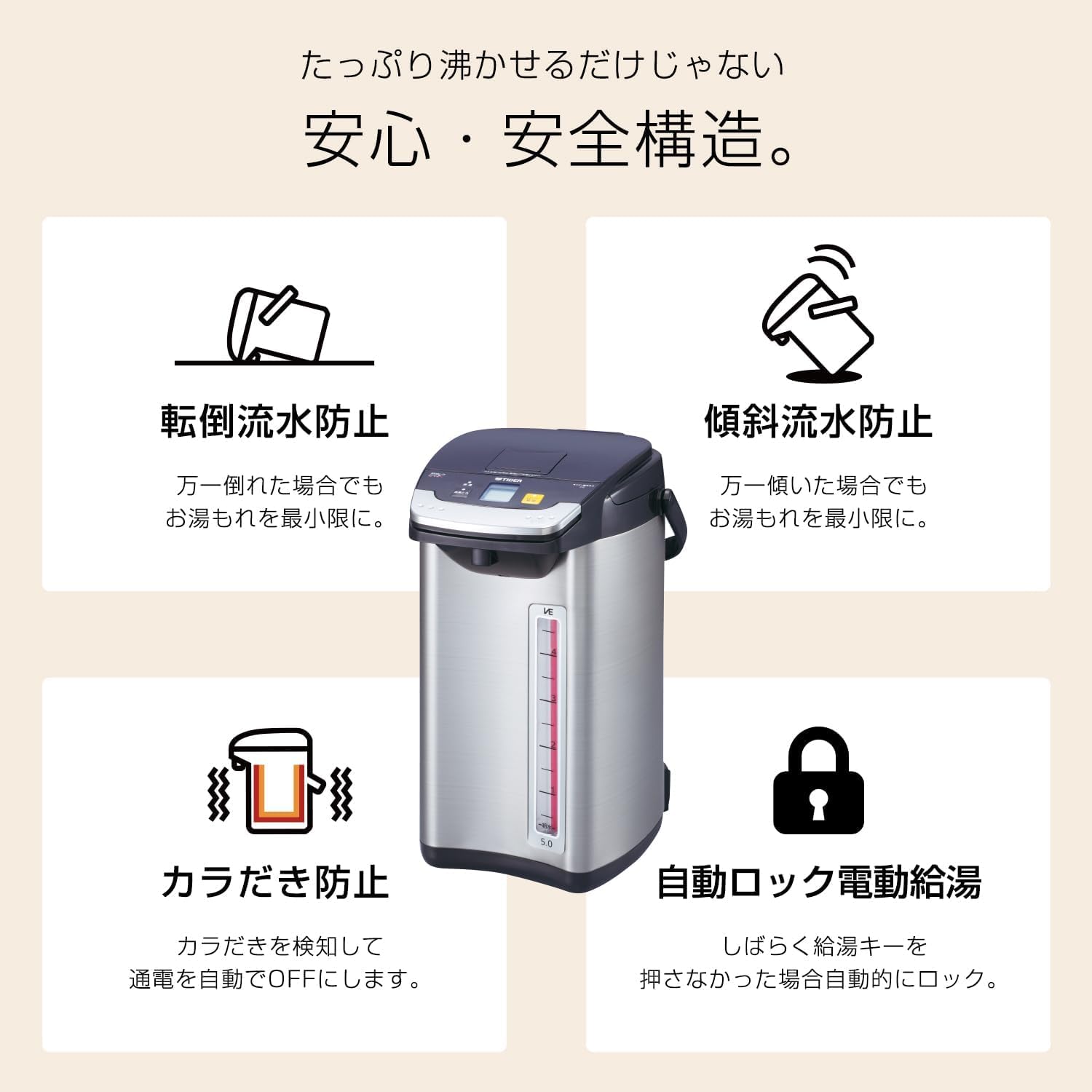 蒸気レス 節電VE保温 まほうびん構造 6つの安心・安全構造 とく子さん