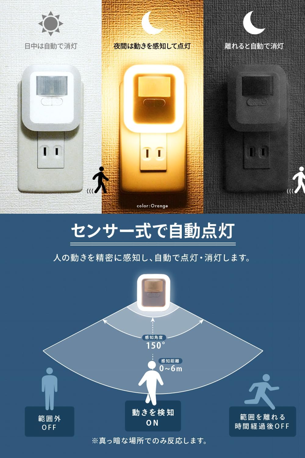 明るさ調節(10段階)・点灯時間設定可能/足元灯 コンセント式 省エネ フットライト 電球色 暖色