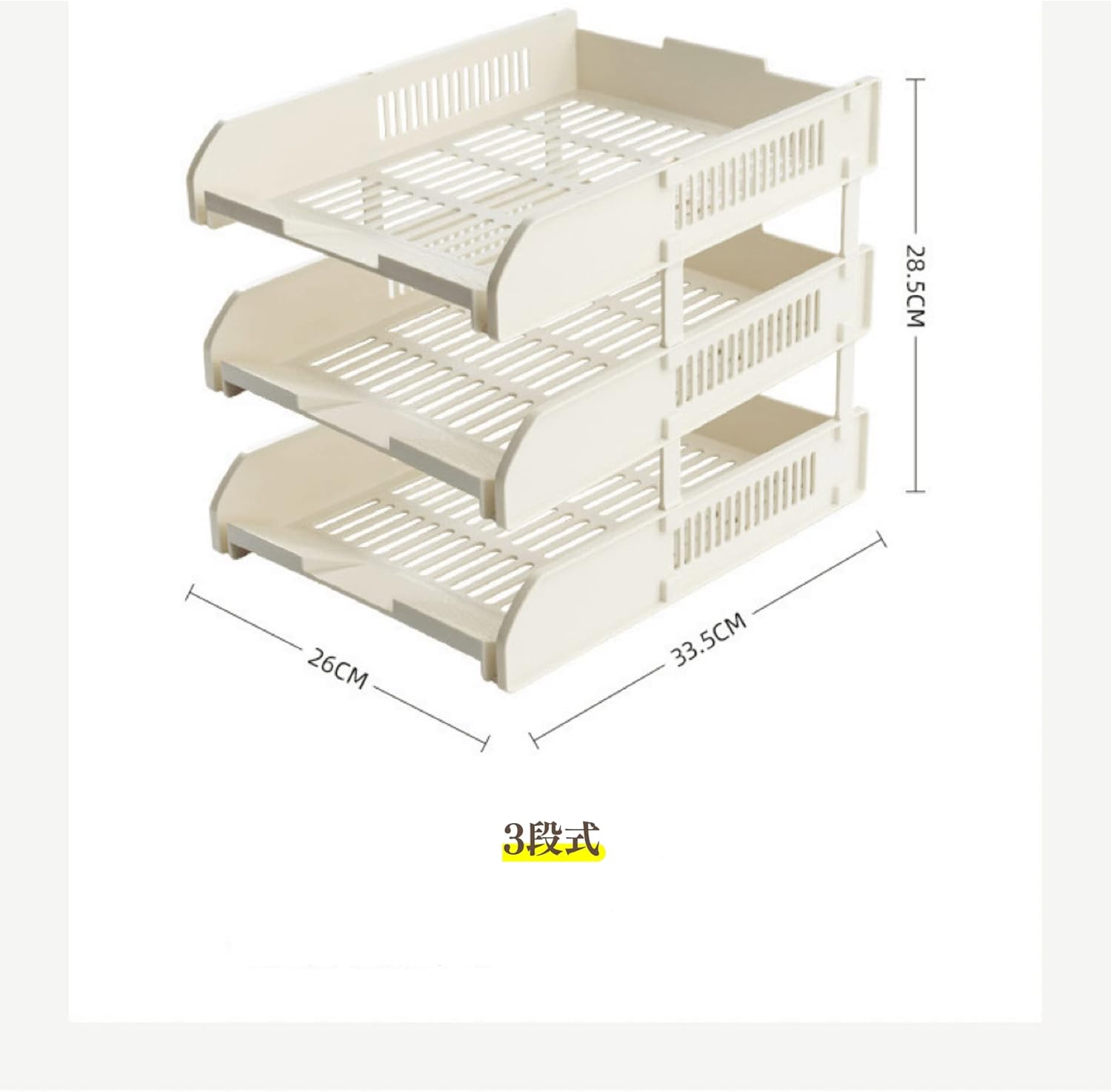 書類トレー レタートレー 書類入れ A4 浅型 積み重ね可能 卓上収納 ファイルラック 新聞 雑誌 クリアファイル シャツケース 整理整頓 ホワイト (3段)