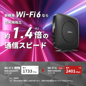 バッファロー11ax(Wi-Fi 6)対応 イージーメッシュ無線LANルータ(2401+800mbps)WSR-3200AX4S-BK