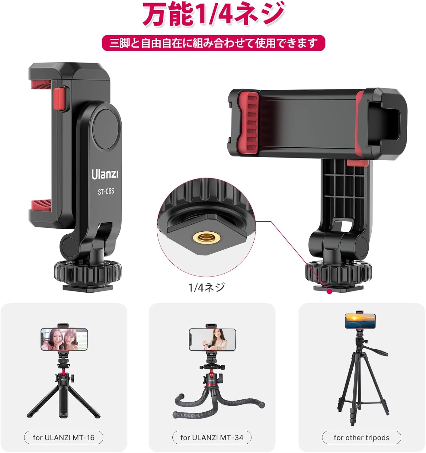 新版 Ulanzi カメラスマホモニターマウント 360°回転 角度調整 スマホホルダー アクセサリーシュー付き 垂直ブラケット