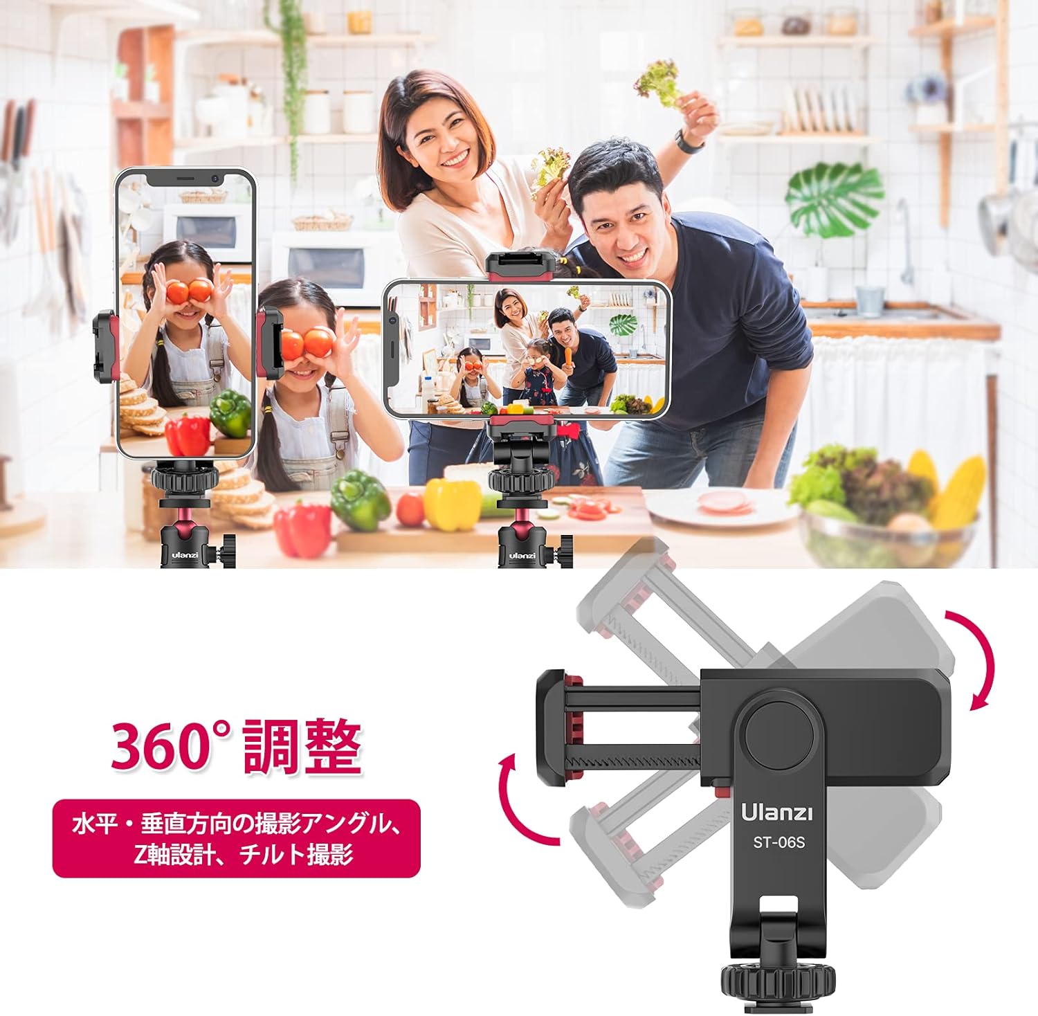 新版 Ulanzi カメラスマホモニターマウント 360°回転 角度調整 スマホホルダー アクセサリーシュー付き 垂直ブラケット CM0676