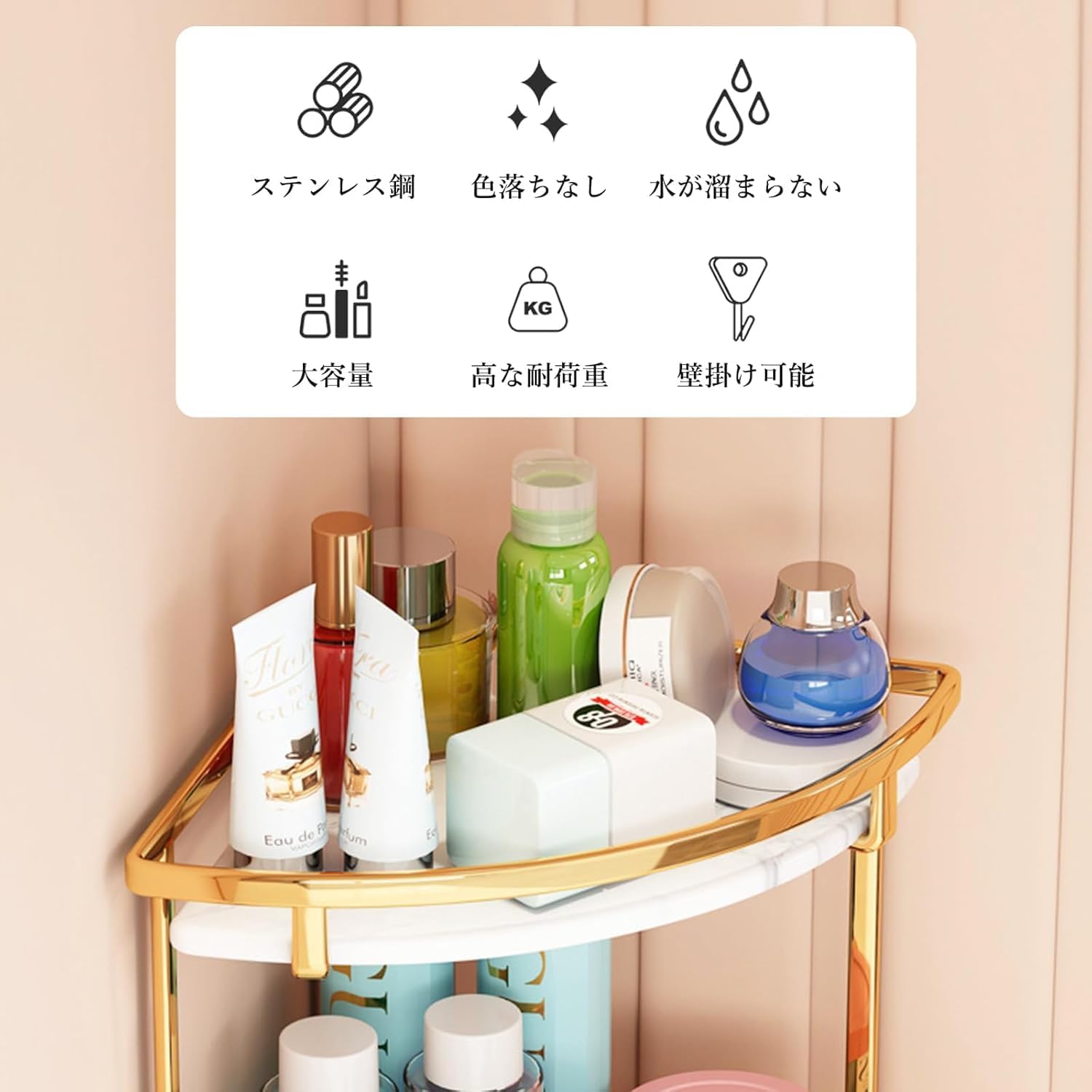 コーナーラック 化粧品ラック 浴室用ラック 浴室収納 自立式コーナー収納棚 シャンプーラック シャワーラック スパイスラック 化粧品収納 卓上収納 調味料ラック バスラック キッチンコーナーラック 取り外し可能 小物収納 省スペース 錆びにくい (2段)