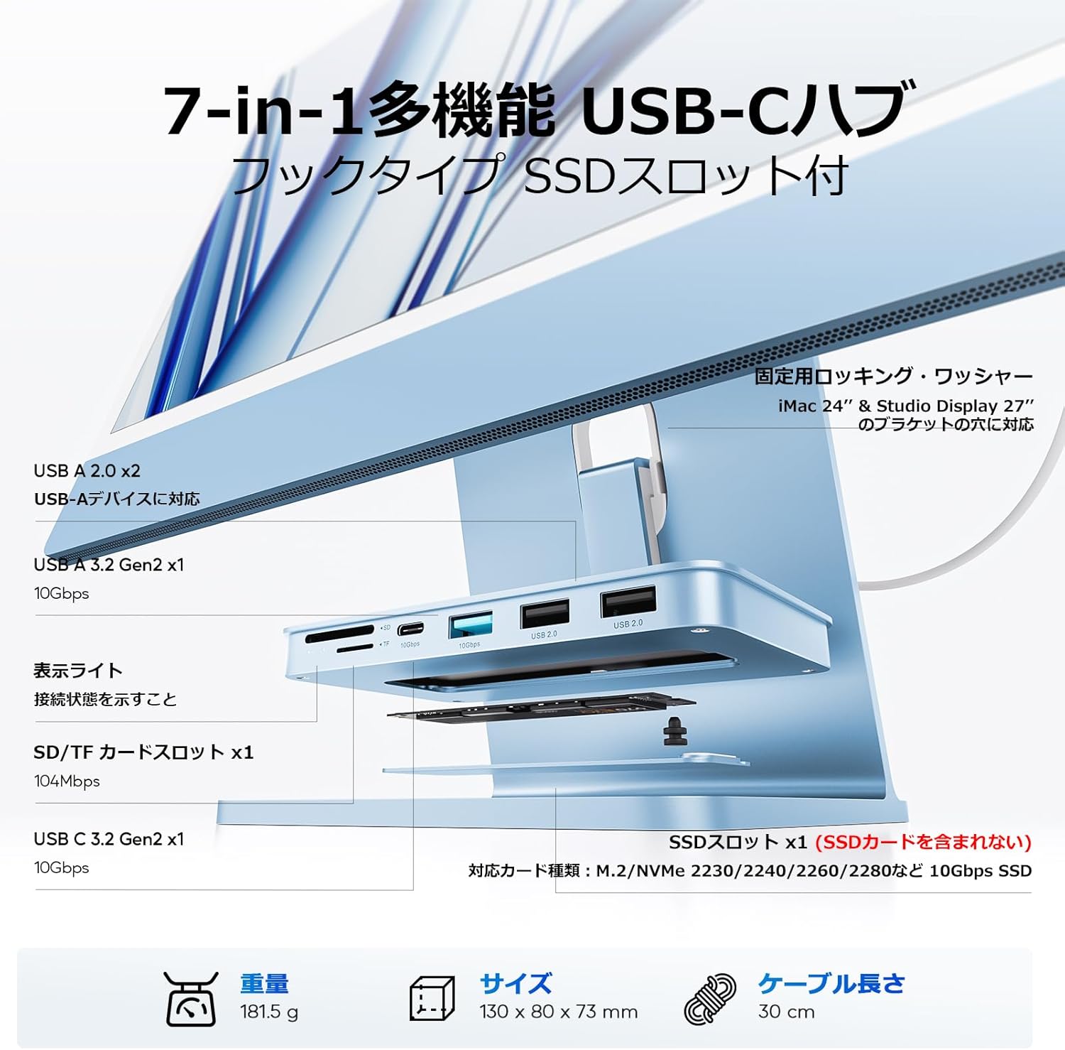 SSDスロット付 (SSD含まれない) iMac アクセサリー フック式 USB C Hub 1×USB-C