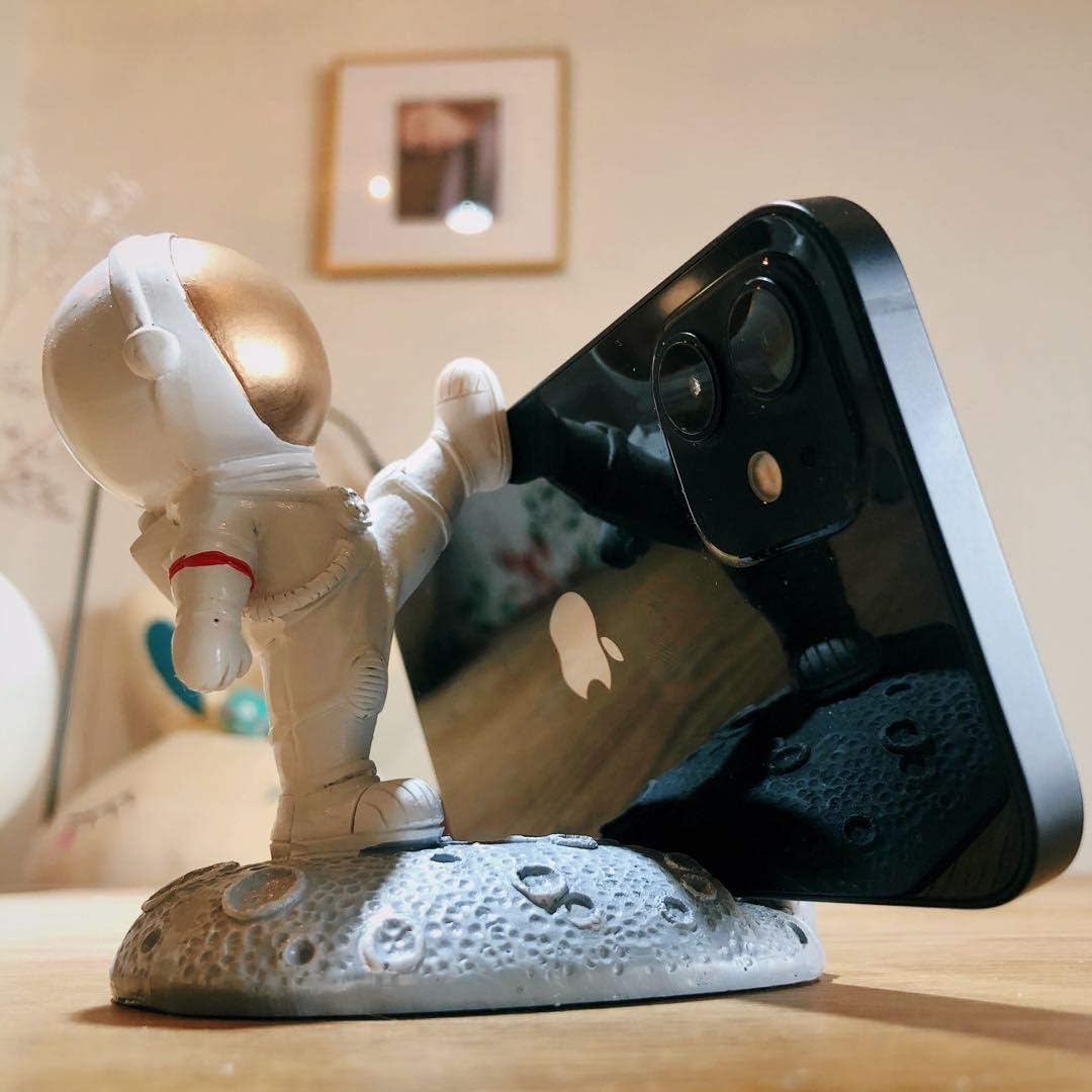卓上 おもしろ雑貨 スマホホルダー 卓上 携帯スタンド メモ立て かわいい スマホで映画鑑賞 インテリア バレンタイン人気ギフト (キックポーズ ゴールド)