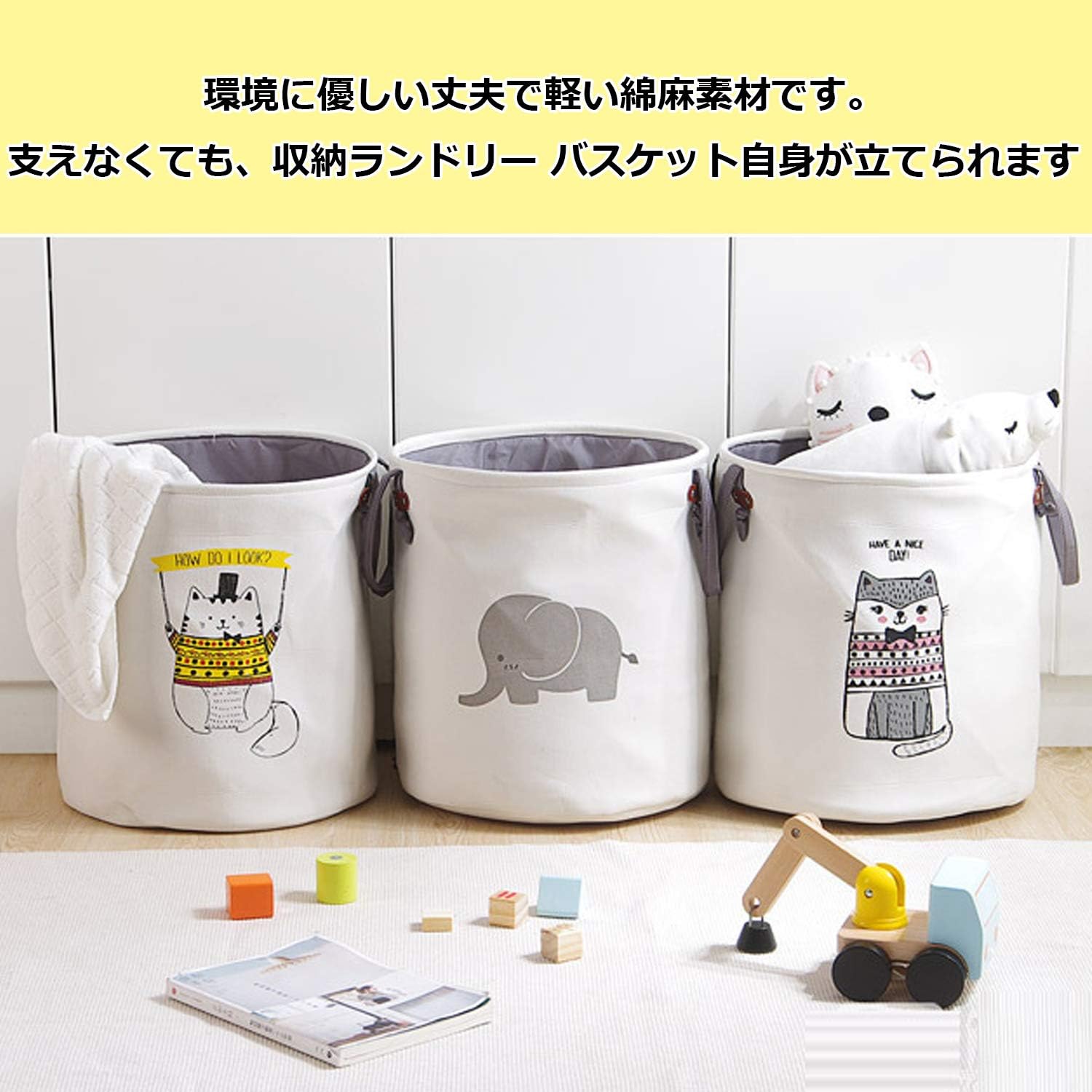 ランドリー収納 丸型 洗濯かご 折り畳み式 布製 収納ボックス 生活雑貨 おもちゃ 収納 取っ手付き シンプルでおしゃれ収納袋 35*40cm (かわいい象)