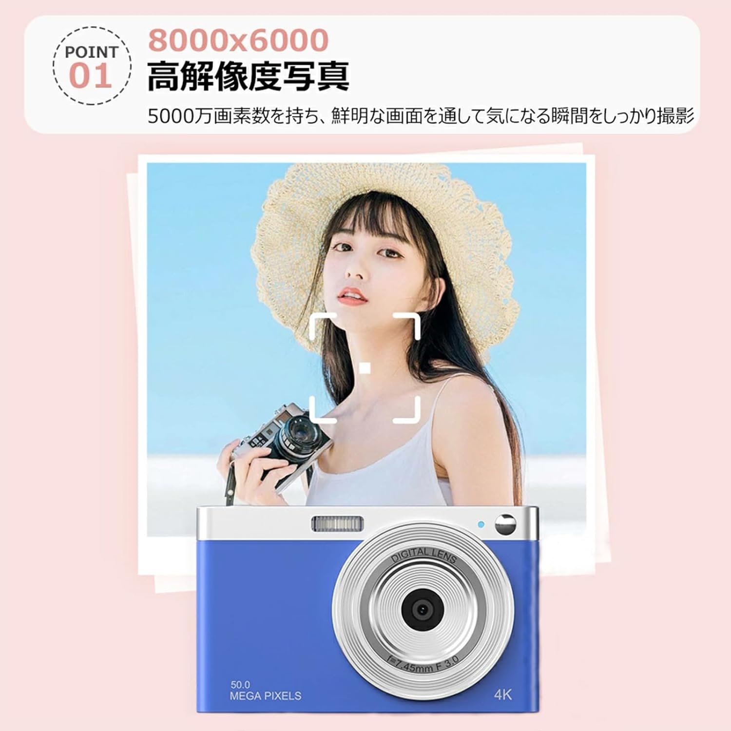 練習機用 大人 子供向け デジカメ キッズカメラ 16倍ズーム 自撮り 動画 撮影 AF 三脚対応 防水 小型 ギフト ブラック ホワイト ピンク 子どもカメラ-ピンク