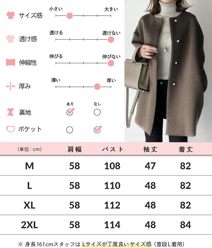 無地 カジュアル アウター 秋 冬 レディース