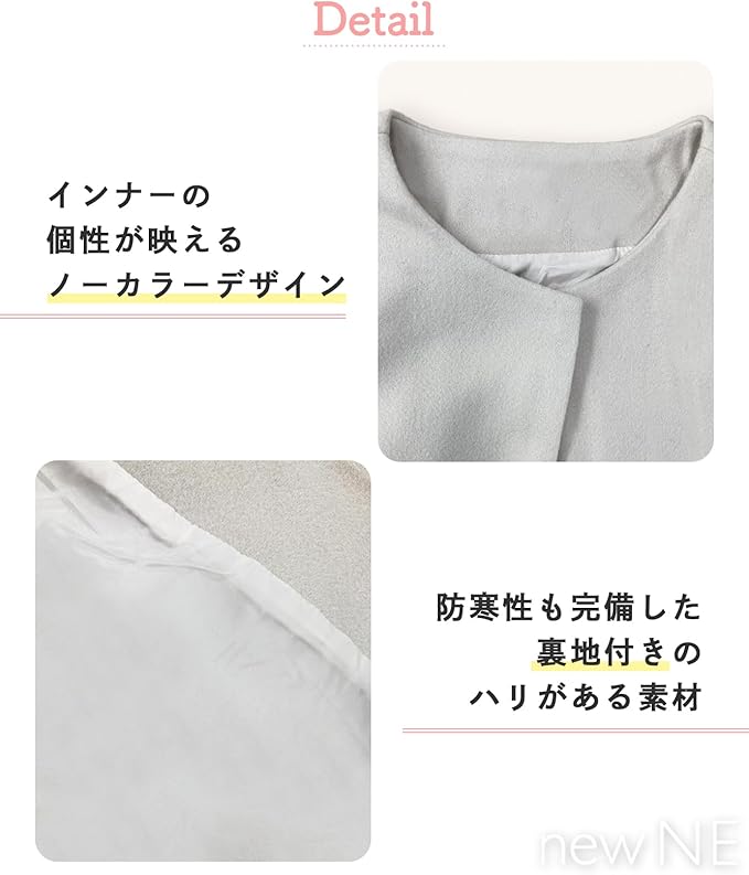 ノーカラー ハーフコート シンプル