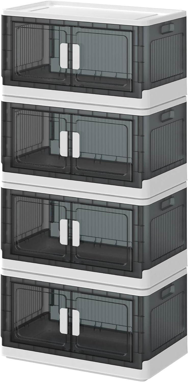 折り畳み 左右開き式 大容量 収納コンテナ 折りたたみ 蓋付き 収納 衣類 布団 洋服 衣装 ケース 耐荷重 積み重ね キャスター付き 四個セット(Mサイズ:48*31*120cm)