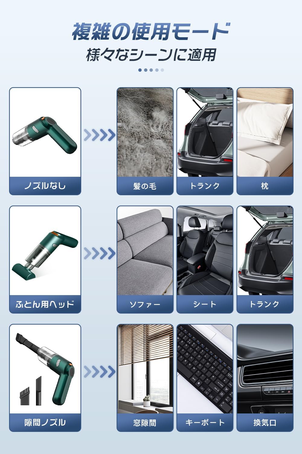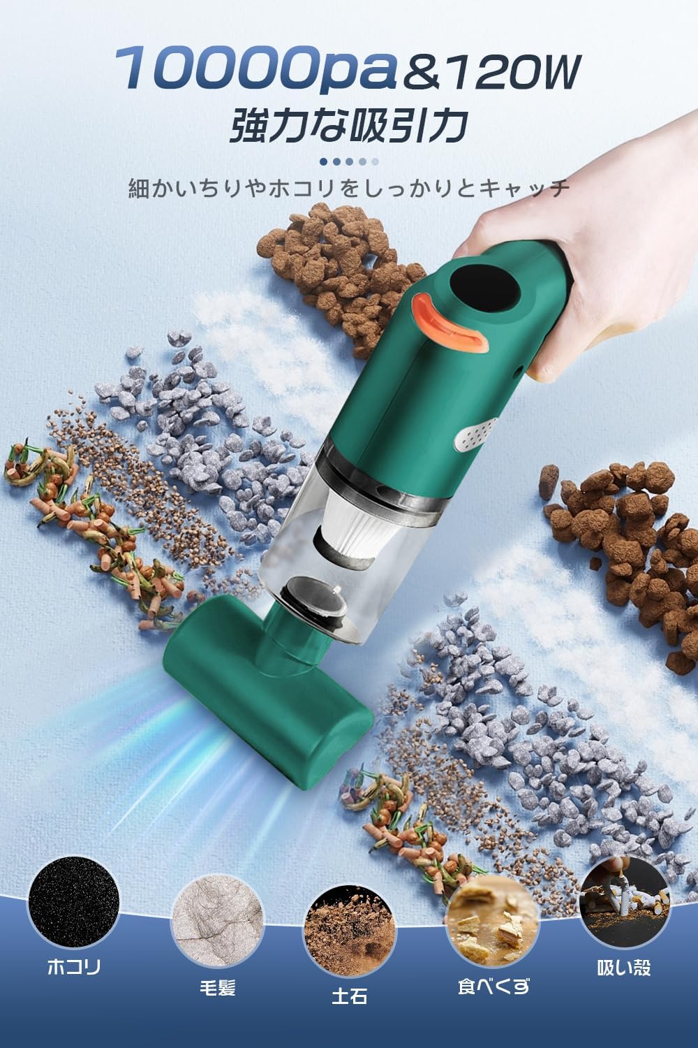 コードレス 車用掃除機 USB充電式 多機能ミニ掃除機 カークリーナー パワフル 乾湿両用 10000PA 強力吸引力