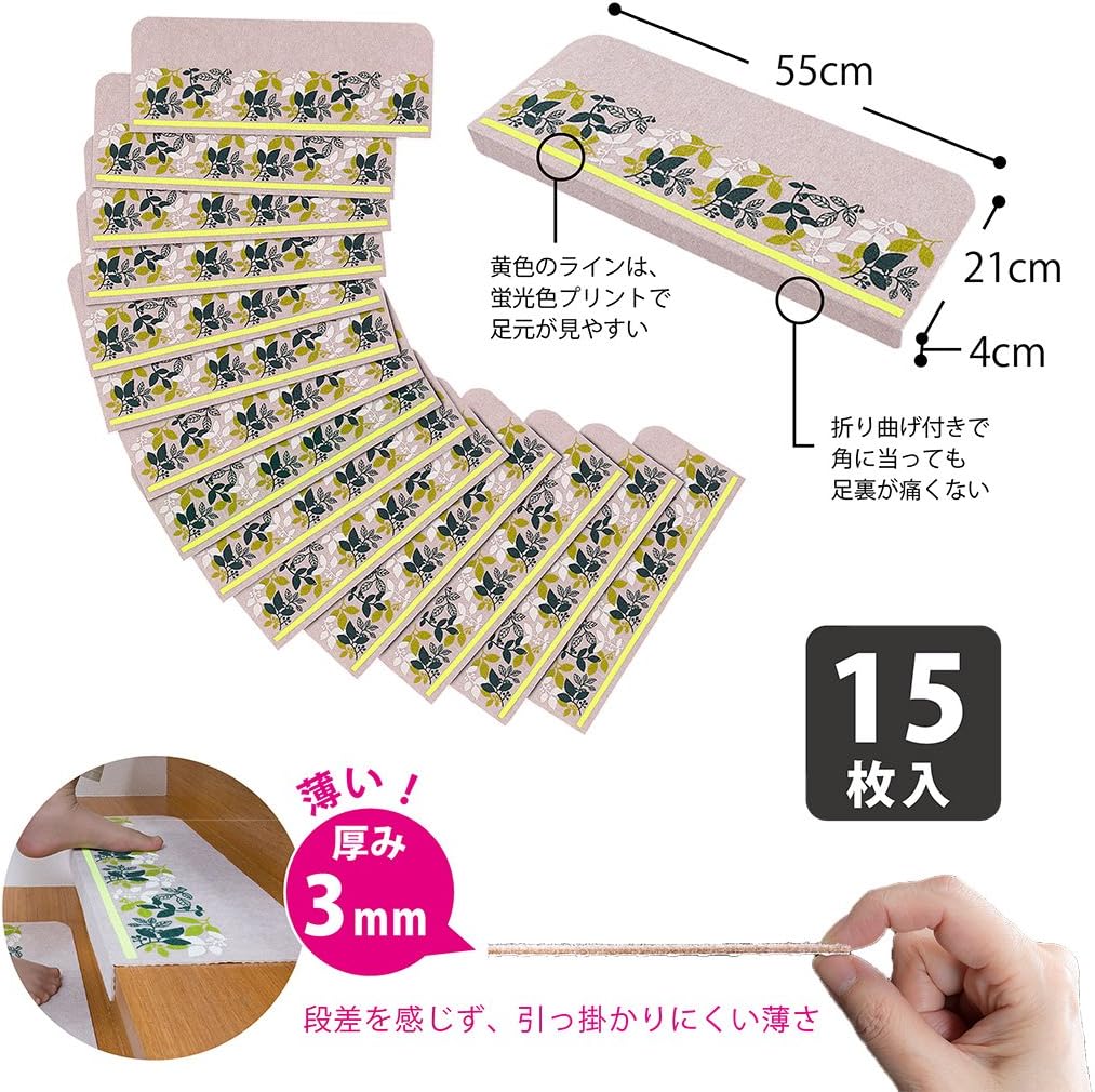 足元見やすい すべり止め付 ずれない 洗える 日本製 折り曲げ付 リーフ おくだけ吸着 55×21cm(折り曲げ55×4cm)15枚入 KO-49