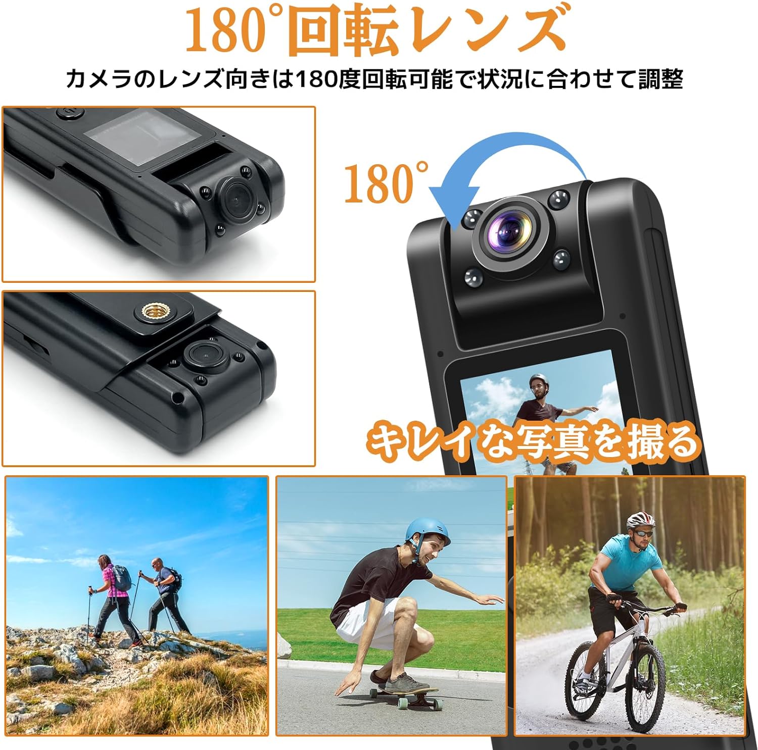 ボディカメラ 1.3インチ液晶画面 180°回転式レンズ 120度広角 256GB 写真撮影 循環録画