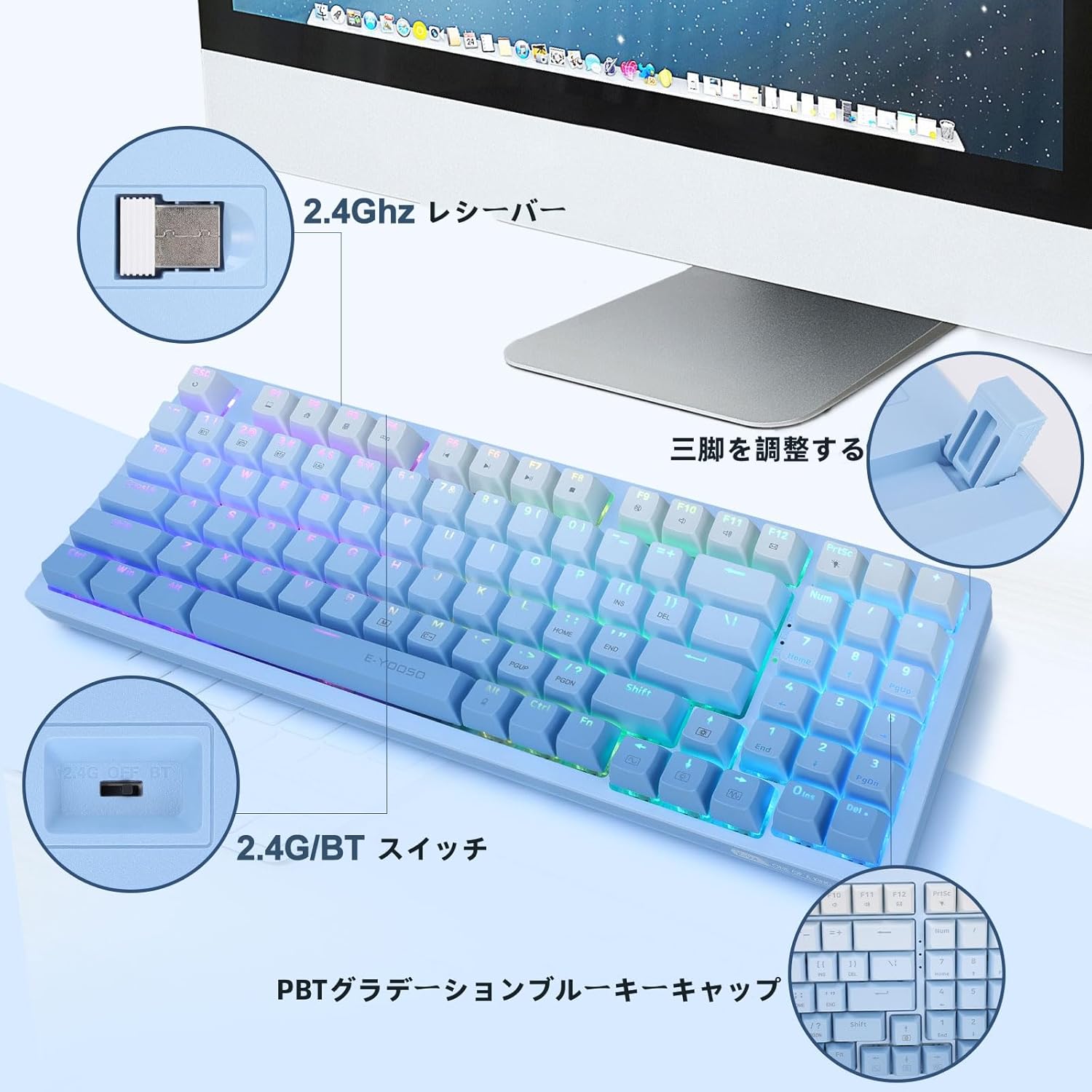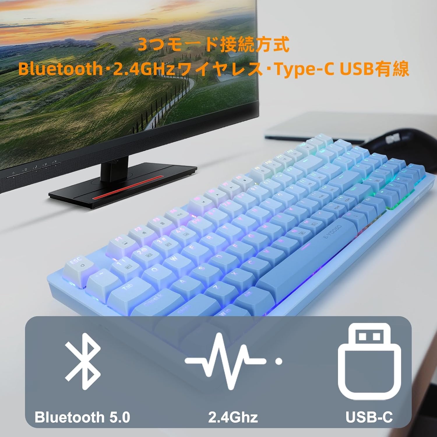 Bluetooth・2.4G HZ無線・USB有線の3モード接続 白軸ゲーミングキーボード94キー