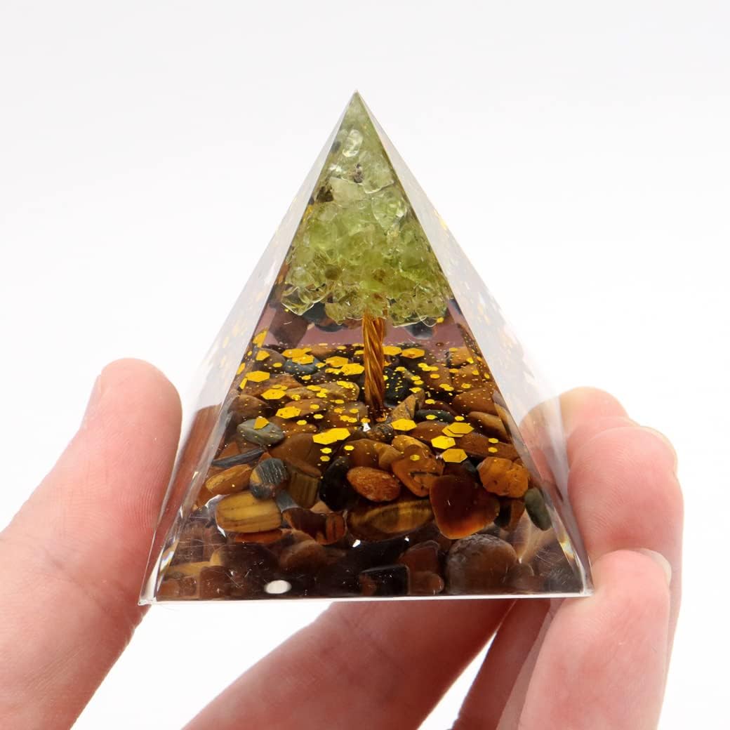 ピラミッド 招財樹 天然石 幅 約5cm 置物 パワーストーン 浄化 タイガーアイ ペリドット 幅 約5cm