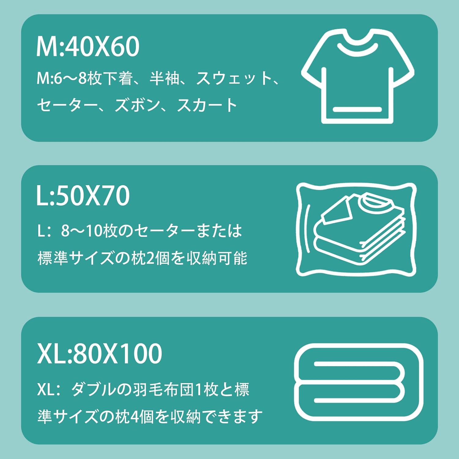 衣類圧縮袋 厚手・高密封・漏れなし 厚さ5倍
