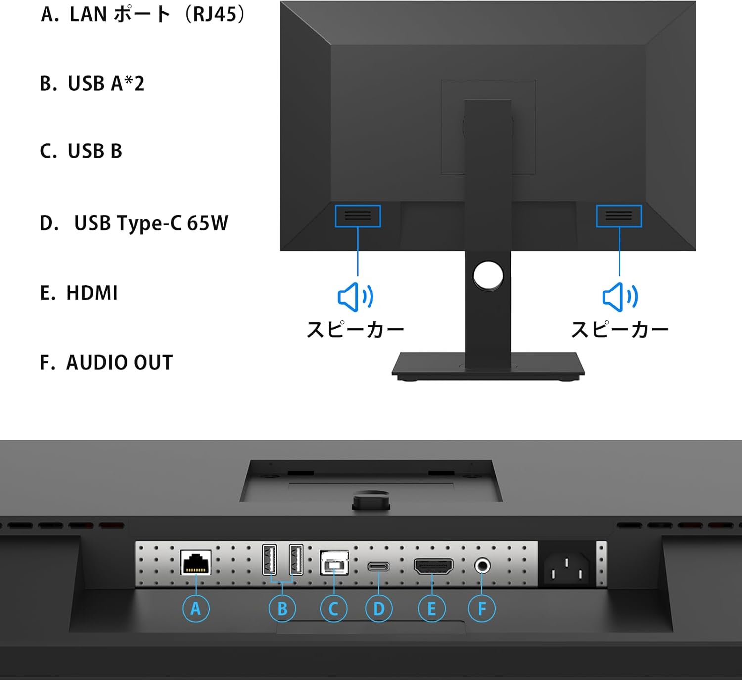 フルHD IPS(非光沢) ディスプレイ Type-C 65W/HDMI/USBハブ付き/縦横回転/高さ調整