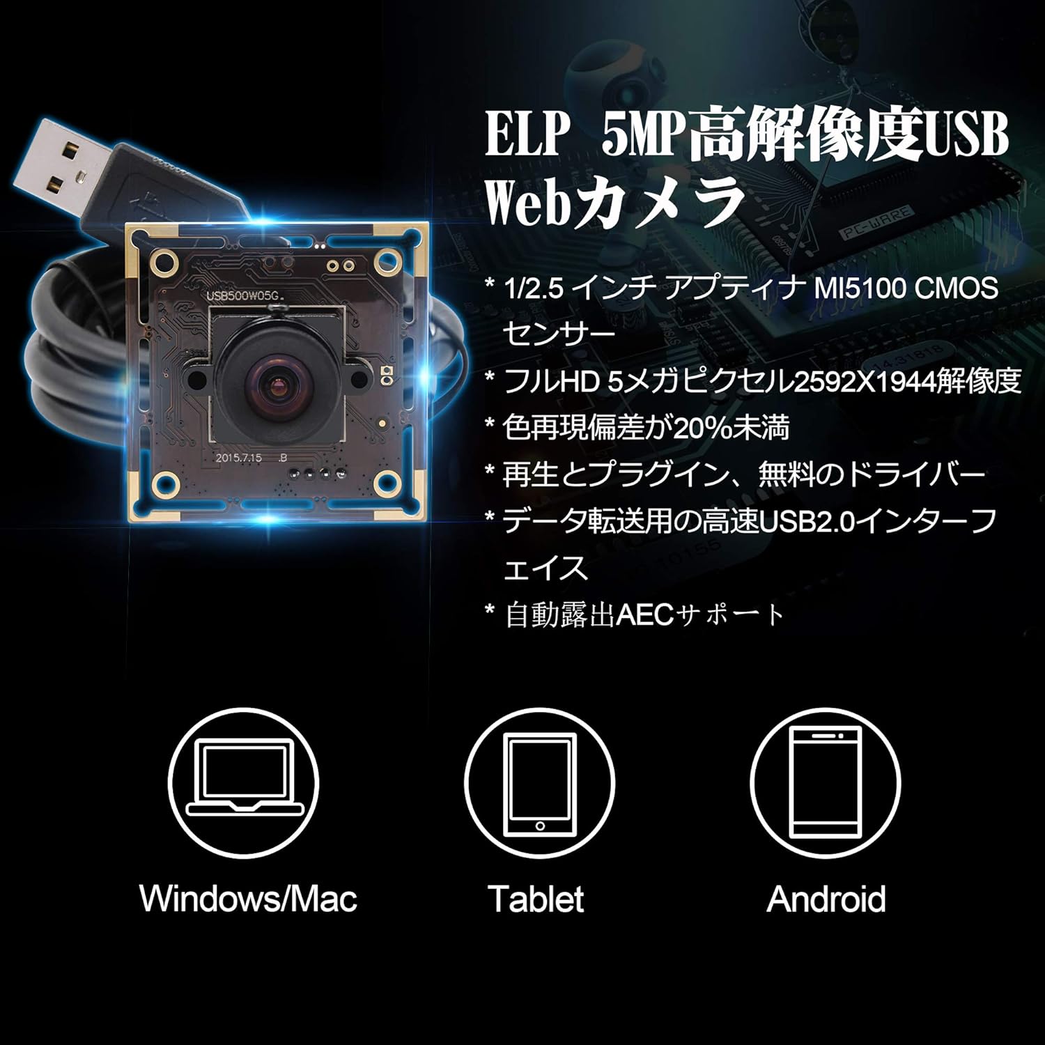 ELP カメラモジュール 500万画素 CM0051