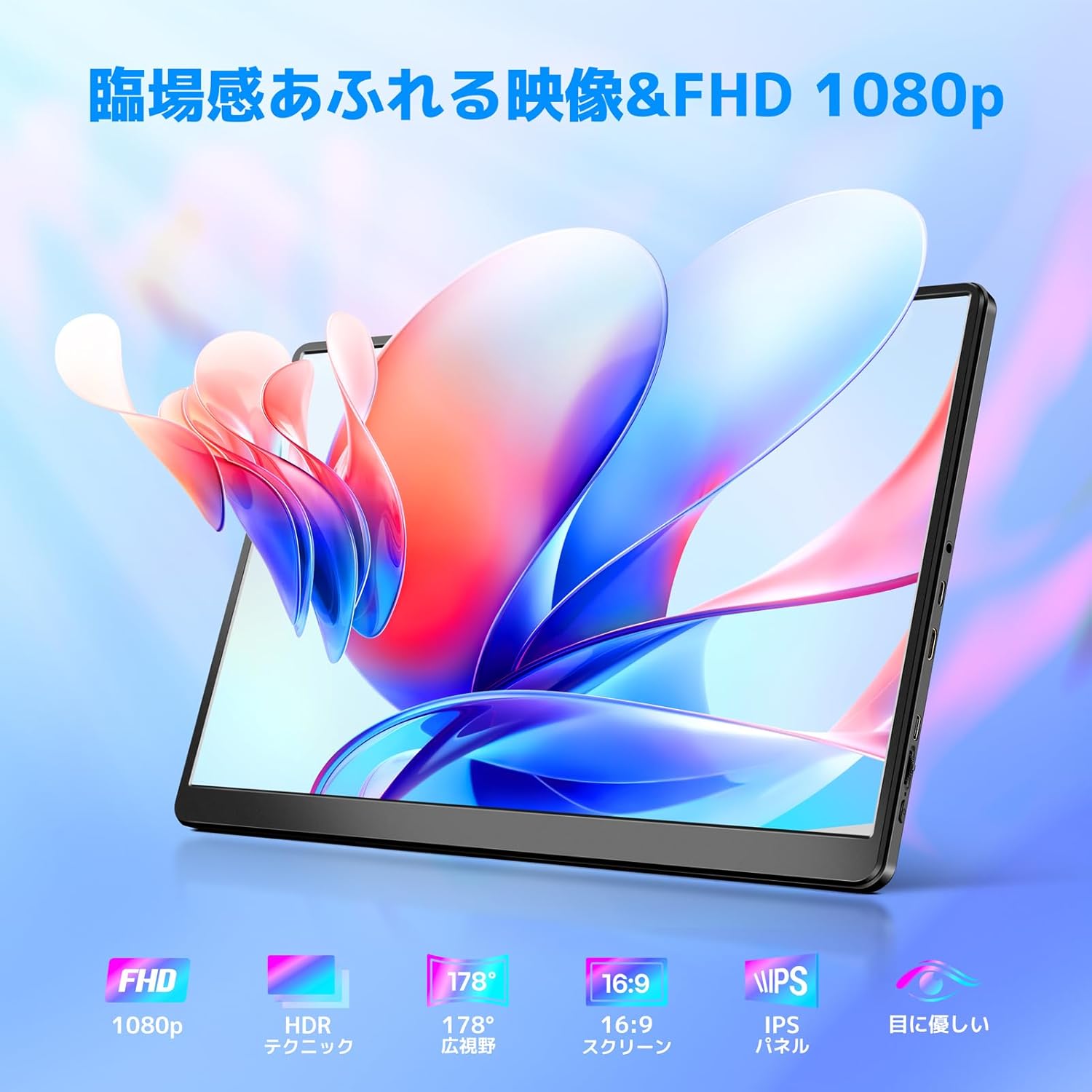 自立型 モバイルティスプレイ ポータブルモニター IPSパネル キックスタンド付き 1920x1080FHD