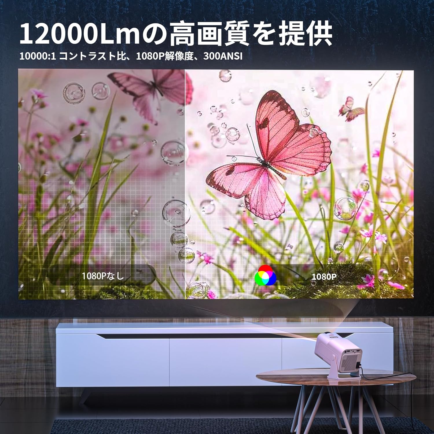 高輝度 プロジェクター 小型 4K対応 2.4G+5GWIFI&BT5.2 ネイティブ1080P