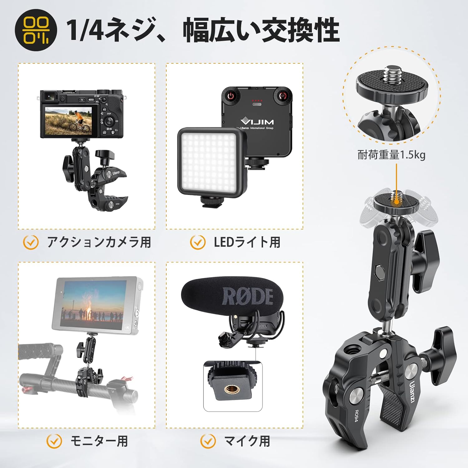 Ulanzi R094 スーパークランプ ボールヘッドアーム 緩み防止 蟹バサミクランプ マジックアーム 360度回転