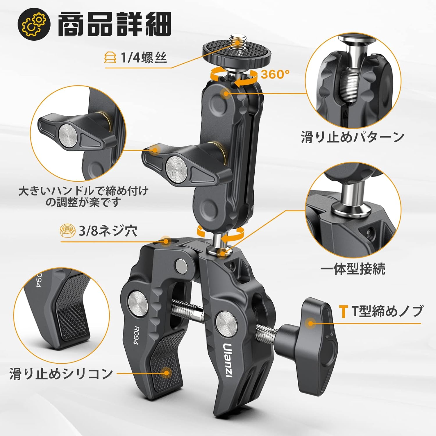 Ulanzi R094 スーパークランプ ボールヘッドアーム 緩み防止 蟹バサミクランプ マジックアーム 360度回転 CM0690