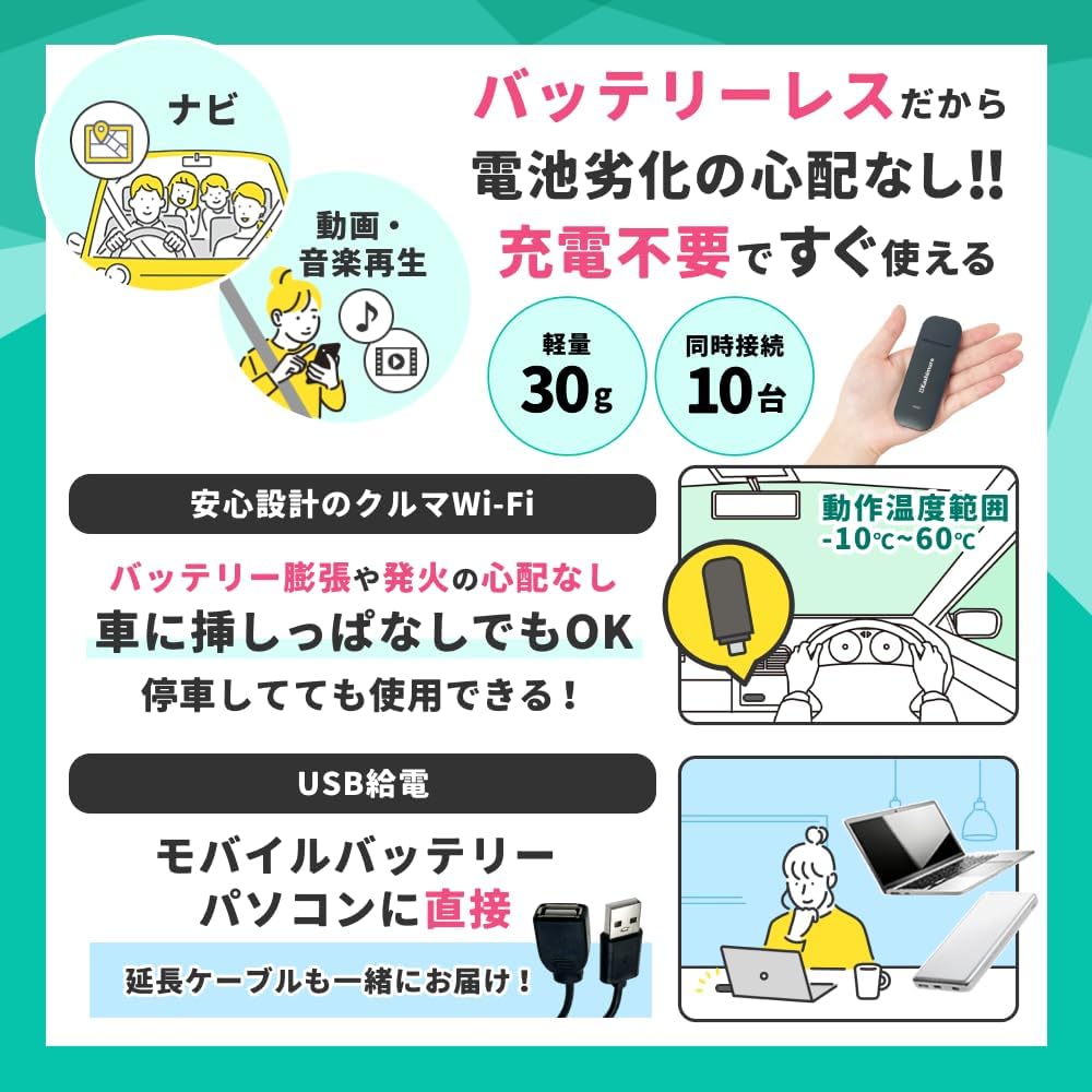 USB型 バッテリーレス 車載 Wi-Fi モバイルルーター ポケット WiFi