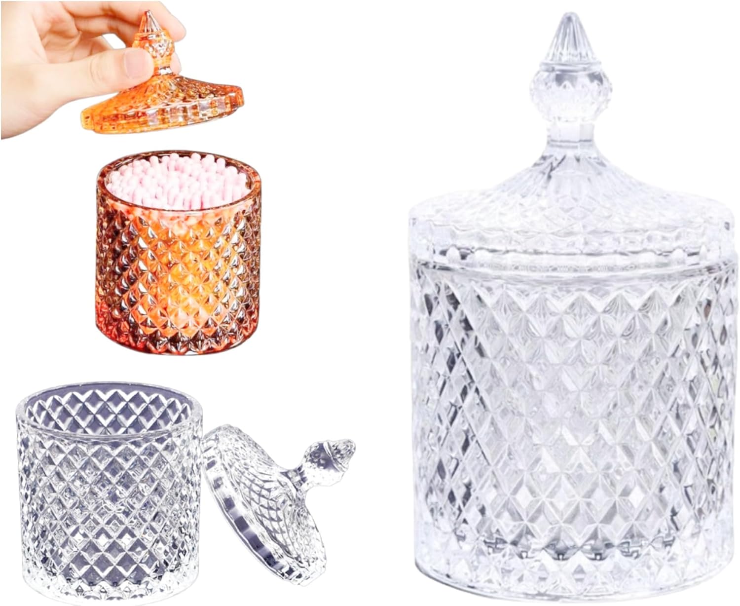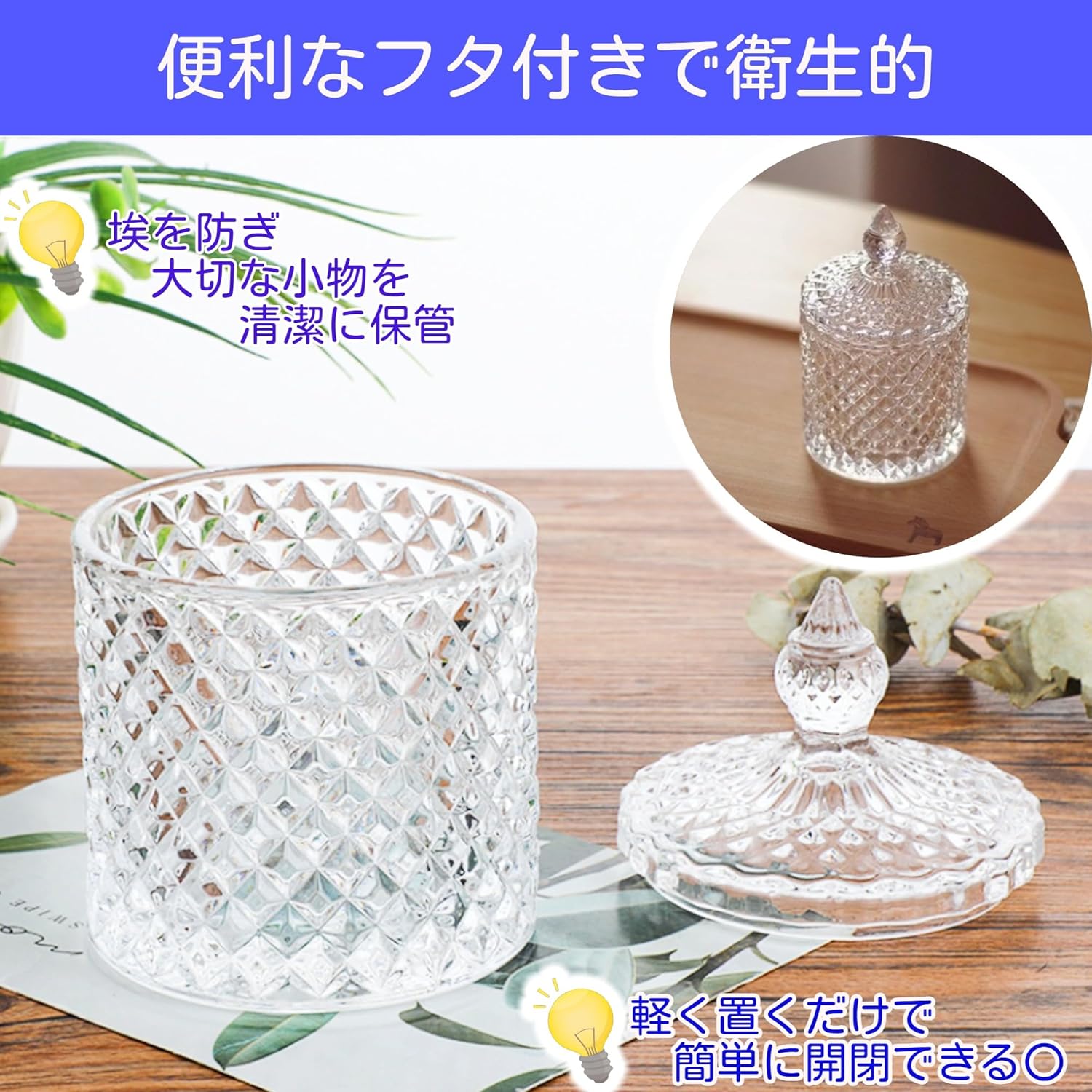 蓋付き コットン 綿棒 収納 小物整理 化粧品収納 透明ガラスジャー 日用品収納 キッチン収納 収納ボックス 生活雑貨収納 1個