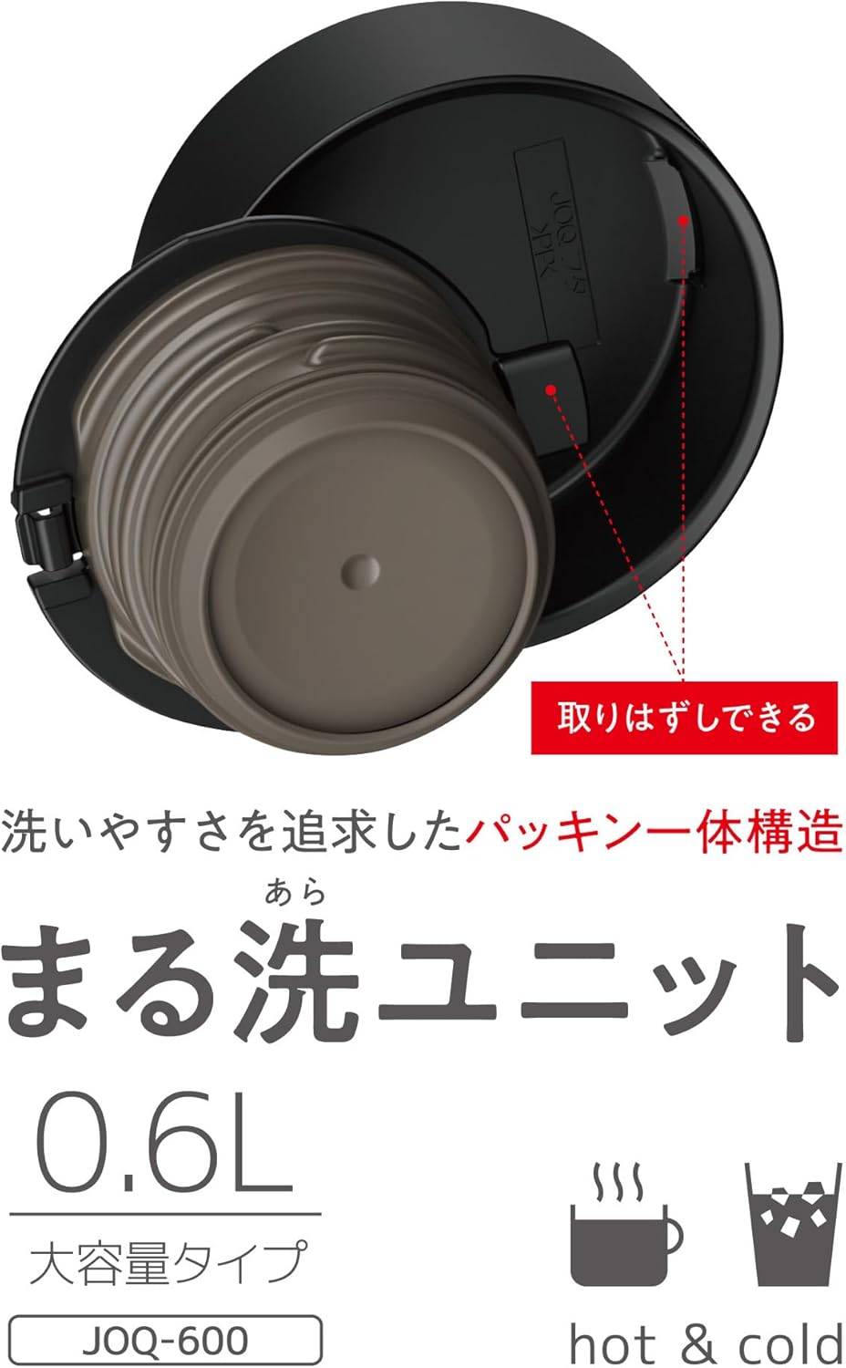 ブラック 隅々まで簡単に洗える 全てのパーツ食洗機OK ステンレス ボトル 軽量コンパクト JOQ-600 BK