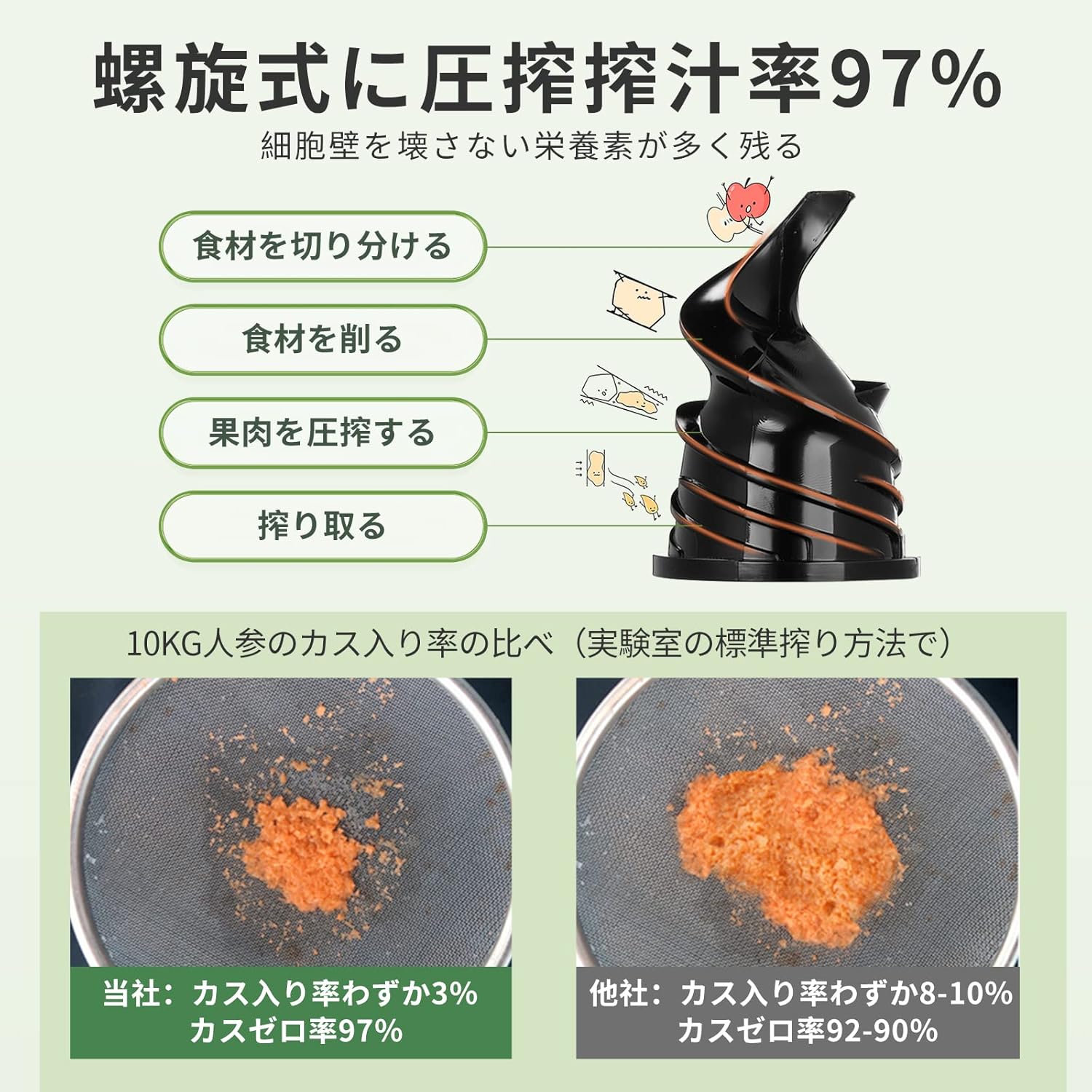 高い搾汁率 酸化しにくい コンパクト フルーツ 野菜 ビタミン 酵素