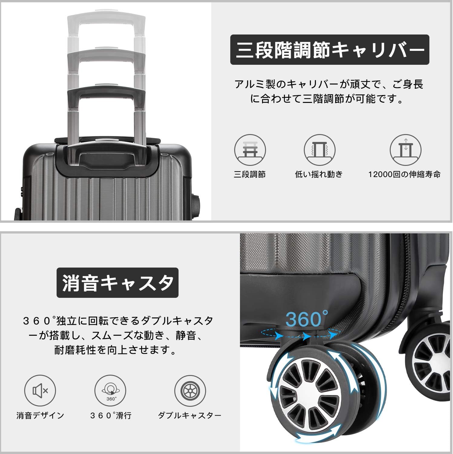 キャリーケース 機内持込 超軽量 大型 静音 ダブルキャスター 耐衝撃