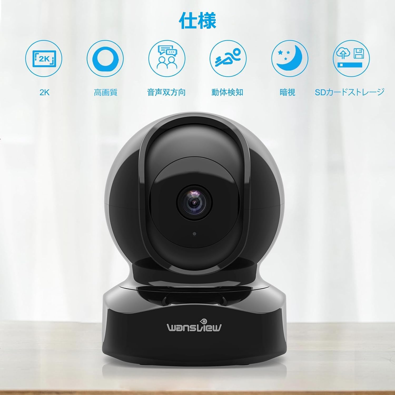 2K 300万画素 ベイビーモニター 2.4GHzWiFi接続 IPカメラ ワイヤレス屋内防犯カメラ ペットカメラ ベビー老人ペット見守り 動体検知 双方向音声 暗視撮影 録画可能 アプリ無料 Alexa対応