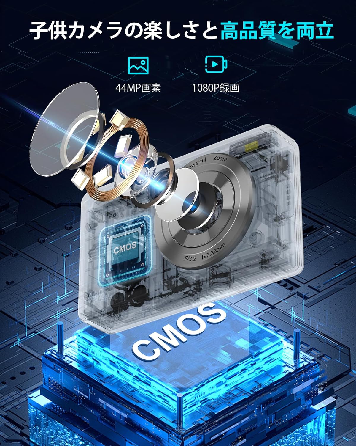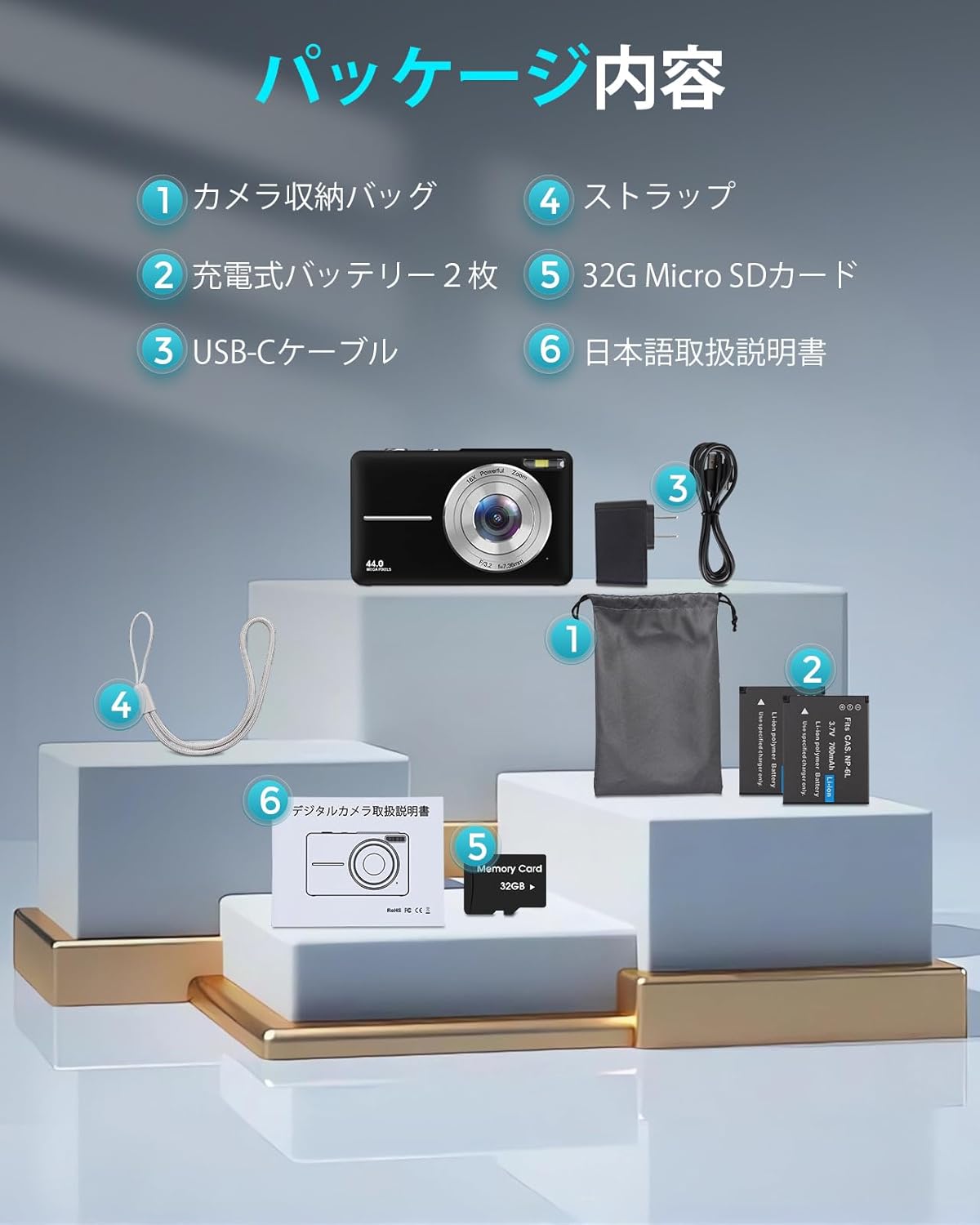 32GBカード付き 予備電バッテリー コンデジ 16倍デジタルズーム FHD 1080P録画 44MP画素 コンパクトvlogカメラ 修学旅行 子供/学生/初心者に向け 小型軽量