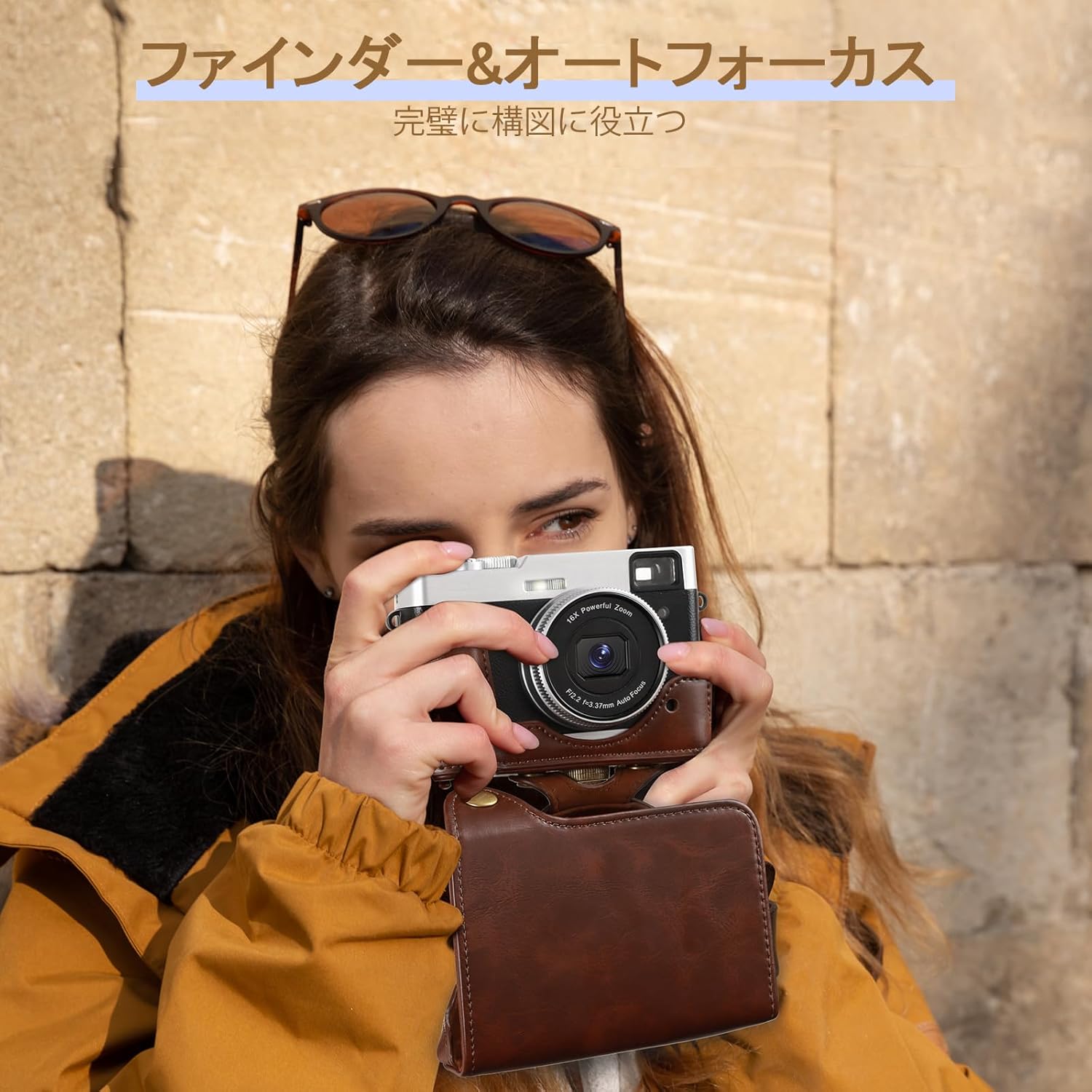 800万画素 オートフォーカス 手振れ補正 16倍ズーム 多機能 デジカメ 初心者向け 軽量 ファインダー モードダイヤル 本革カメラバッグ付き 32Gカード付属