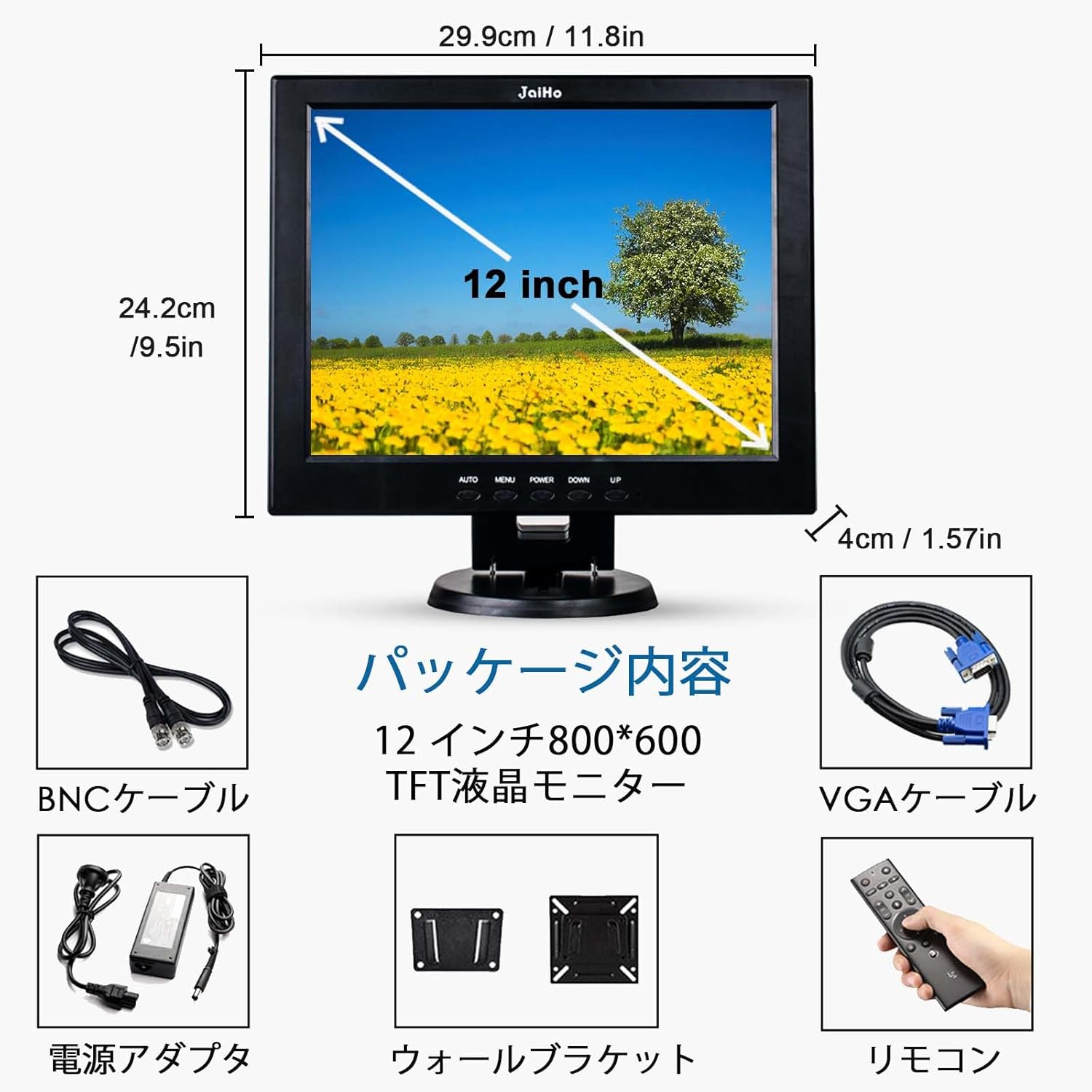HDMI 4:3 モニター 800×600解像度 LCD カラービデオ ディスプレイ HDMI VGA BNC USB AV入力