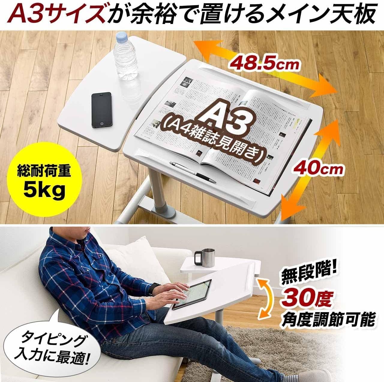 昇降式 高さ57〜83cm A3/15.6型PC対応 角度調整天板+角度固定天板 キャスター付き
