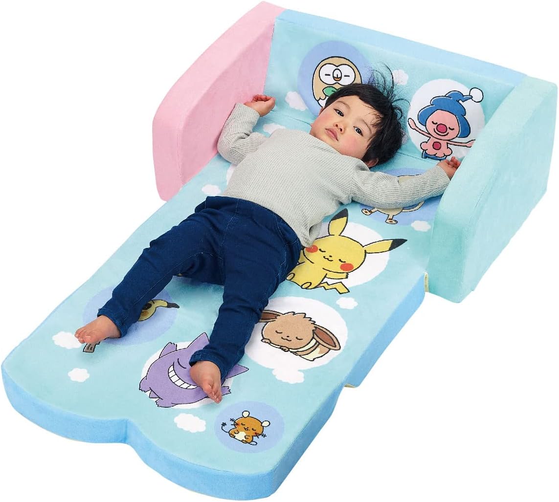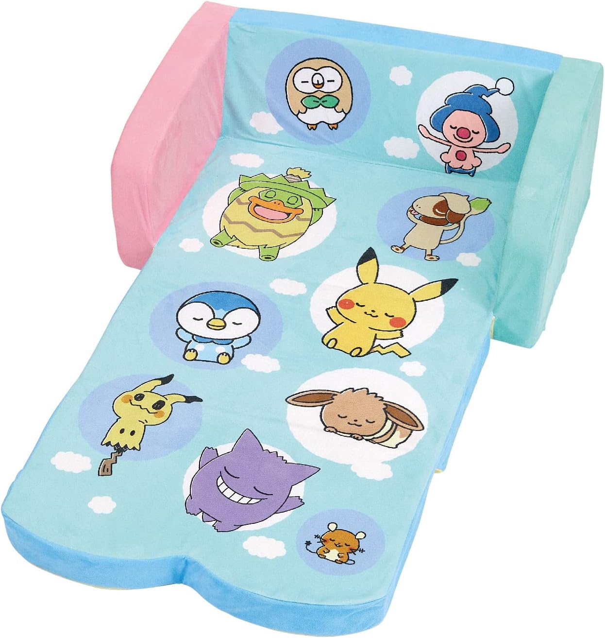 ピカチュウ、イーブイ、ポッチャマが大きくデザインされていてポケモンたちのかわいいデザインのソファベッド