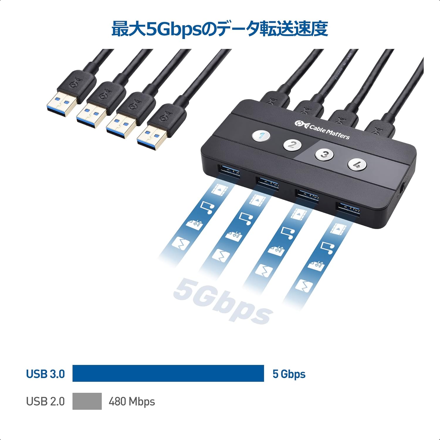 4ポート USB 3.0 4台PC用 4入力4出力 5Gbps USB 切り替え usb スイッチ 手動切替器