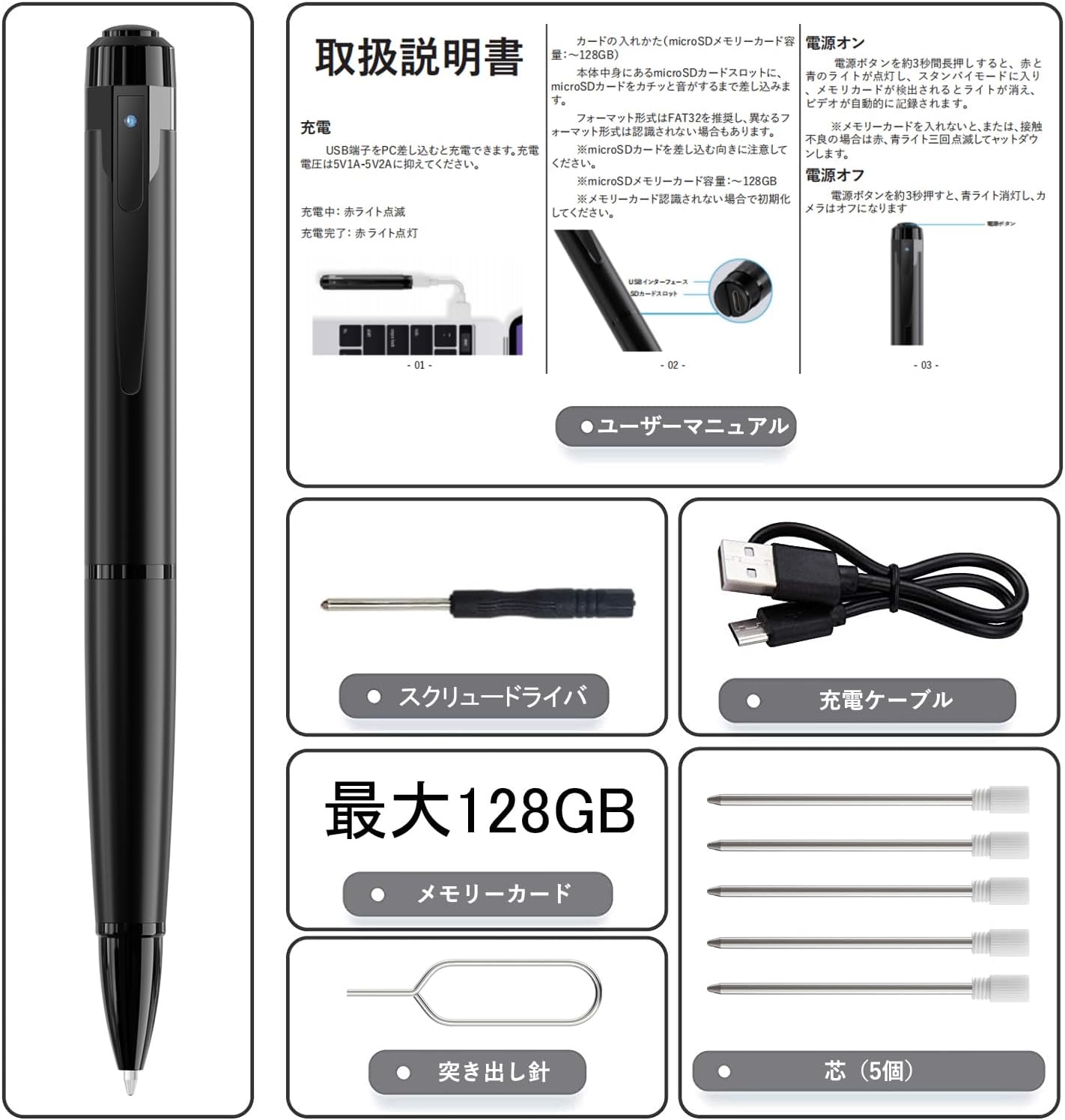 スリムタイプ 超小型カメラ 4K画質 国内検品 CCD 録画時ランプ非点灯 防犯用
