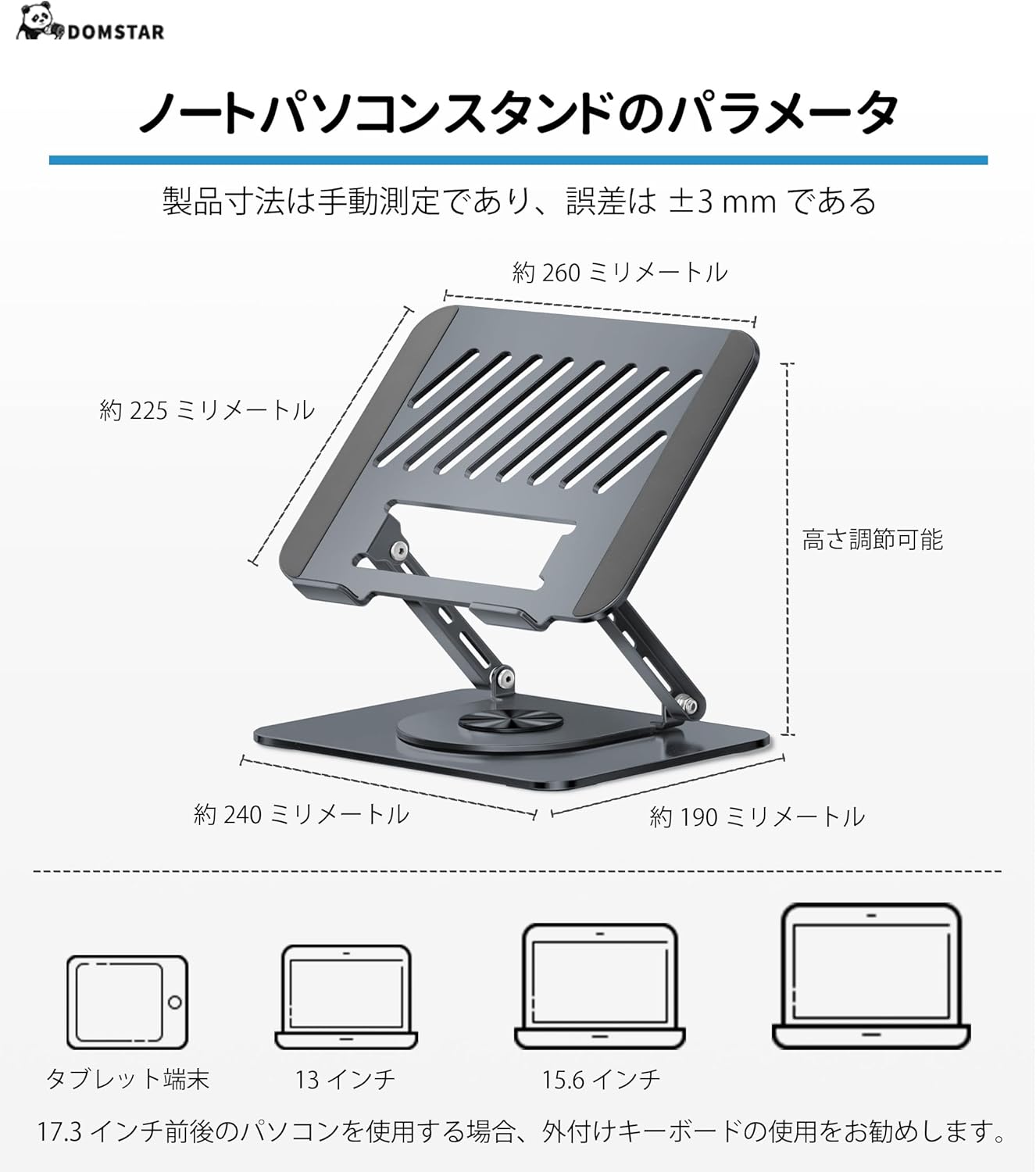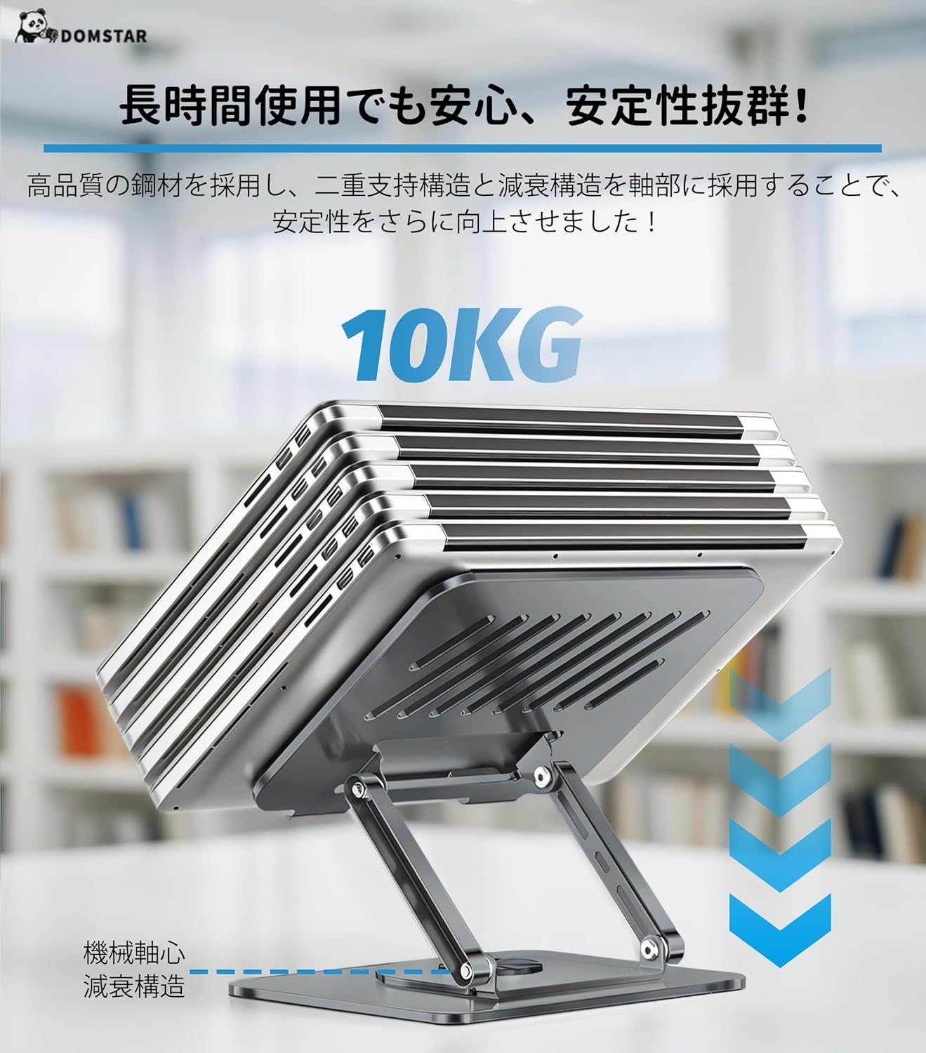 360°回転 パソコンスタンド 無段階調整&角度調整可能 折りたたみ式 pcスタンド
