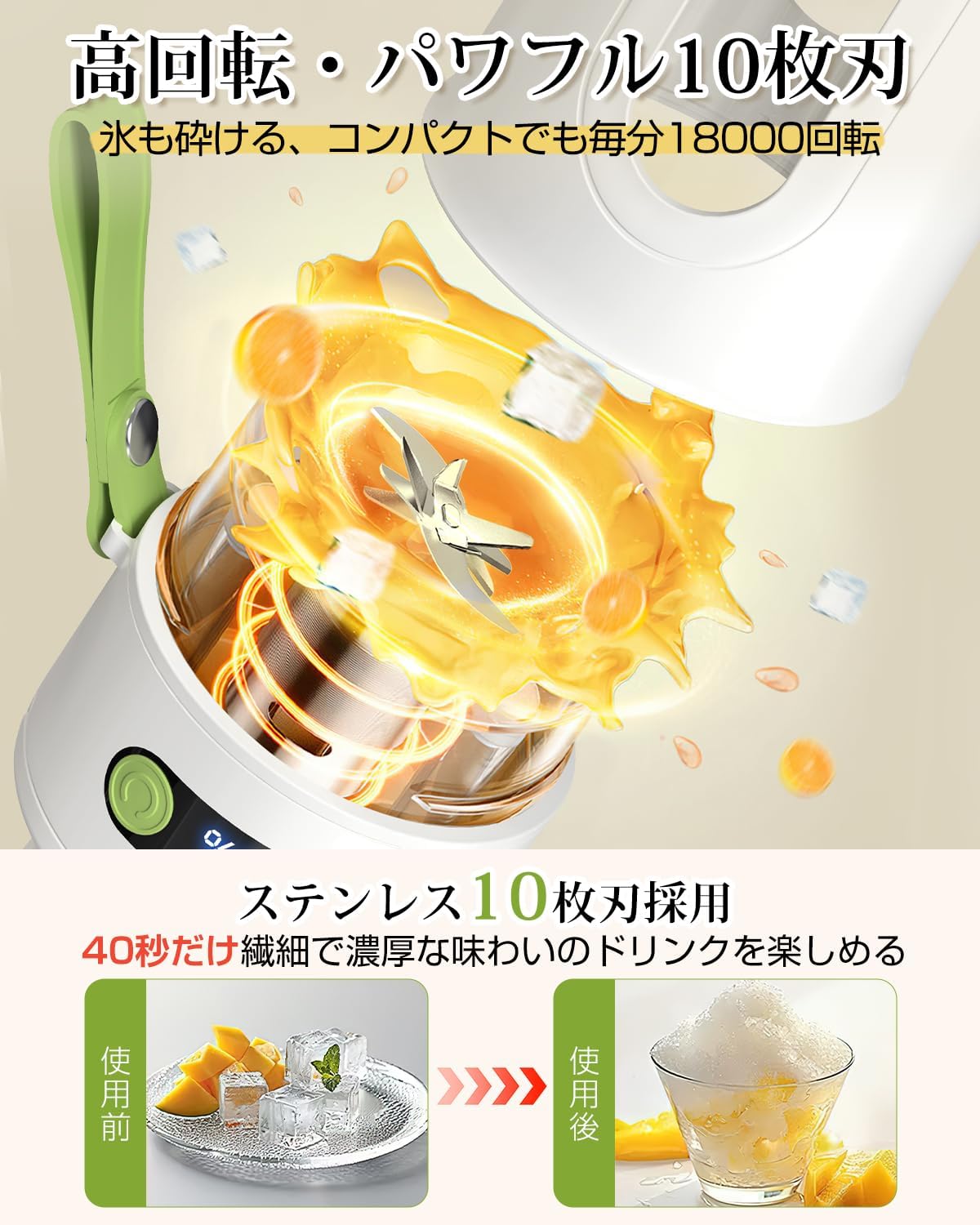 Type-C USB急速充電 LEDディスプレ コードレス ブレンダー 野菜 果物 離乳