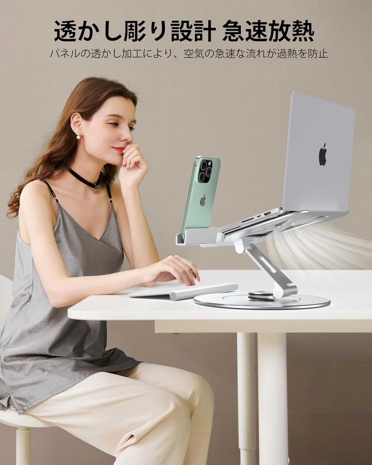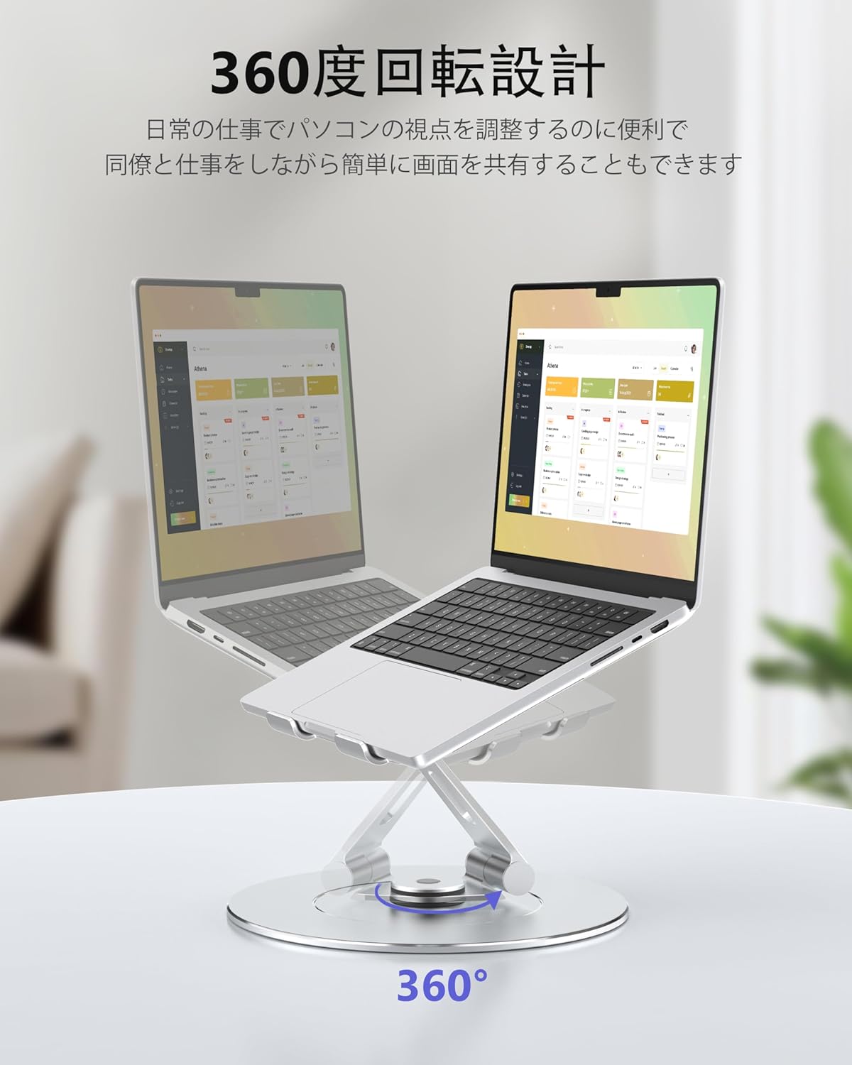 360度回転ノートパソコンスタンド折り畳み高さ調整可能、アルミ合金製軽量収納可能、姿勢改善背痛緩和