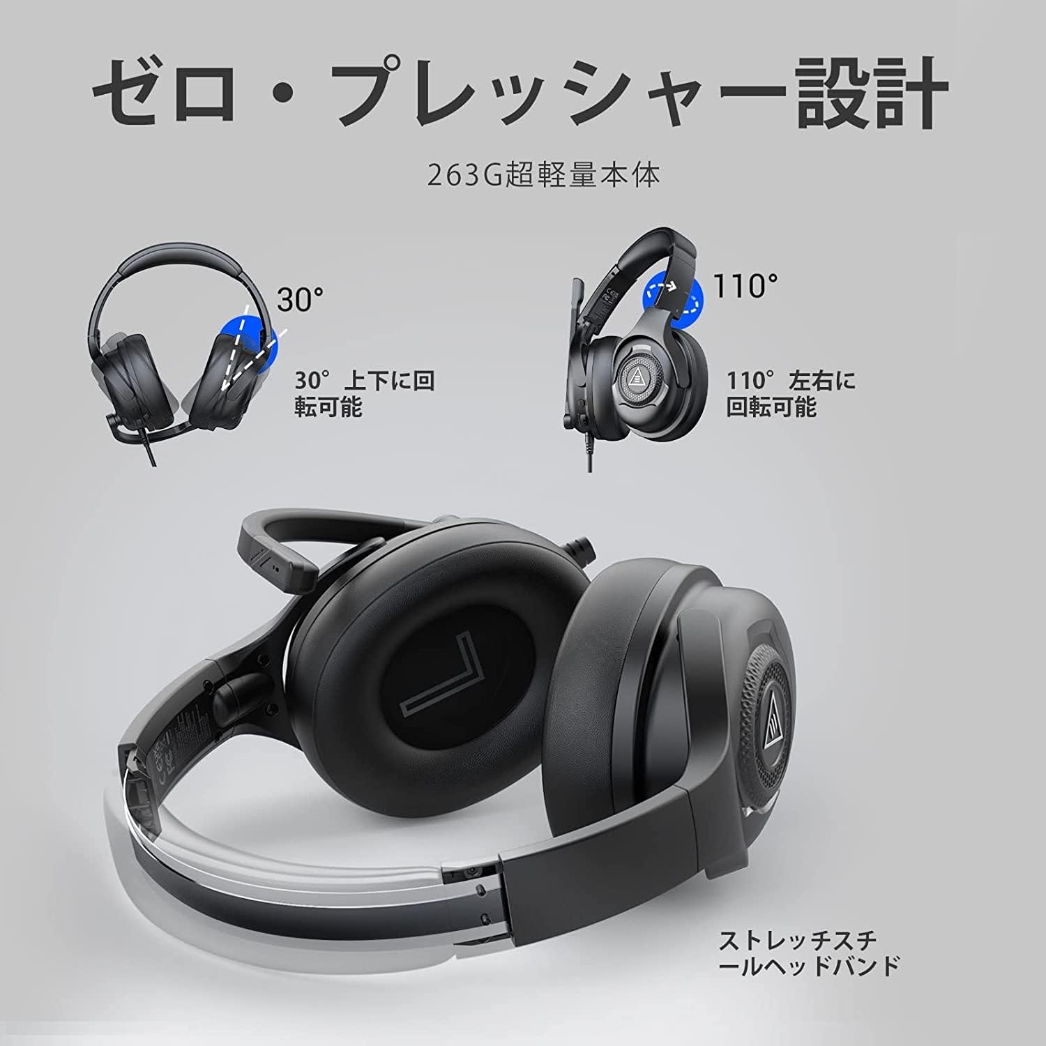ノイズキャンセリングマイク付き PC用ヘッドセット 263g軽量 音量調節付き