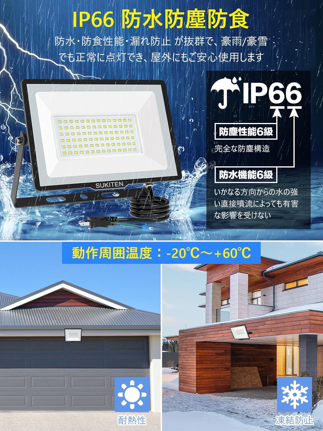 極薄型 IP66防水 6500K 昼光色 高輝度 高放熱 120°広角 投光器ledライト 夜間作業